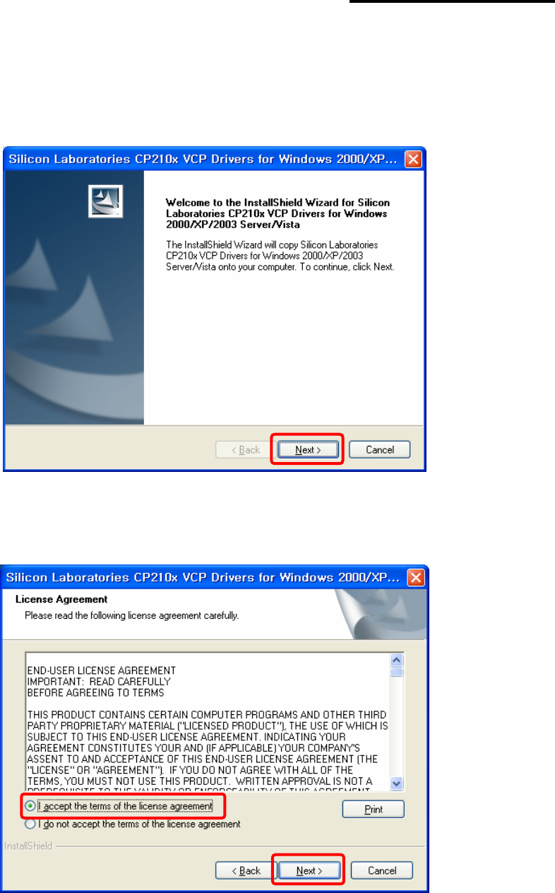(1) Execute “CP210x_VCP_Win2K_XP_S2K3.exe”.