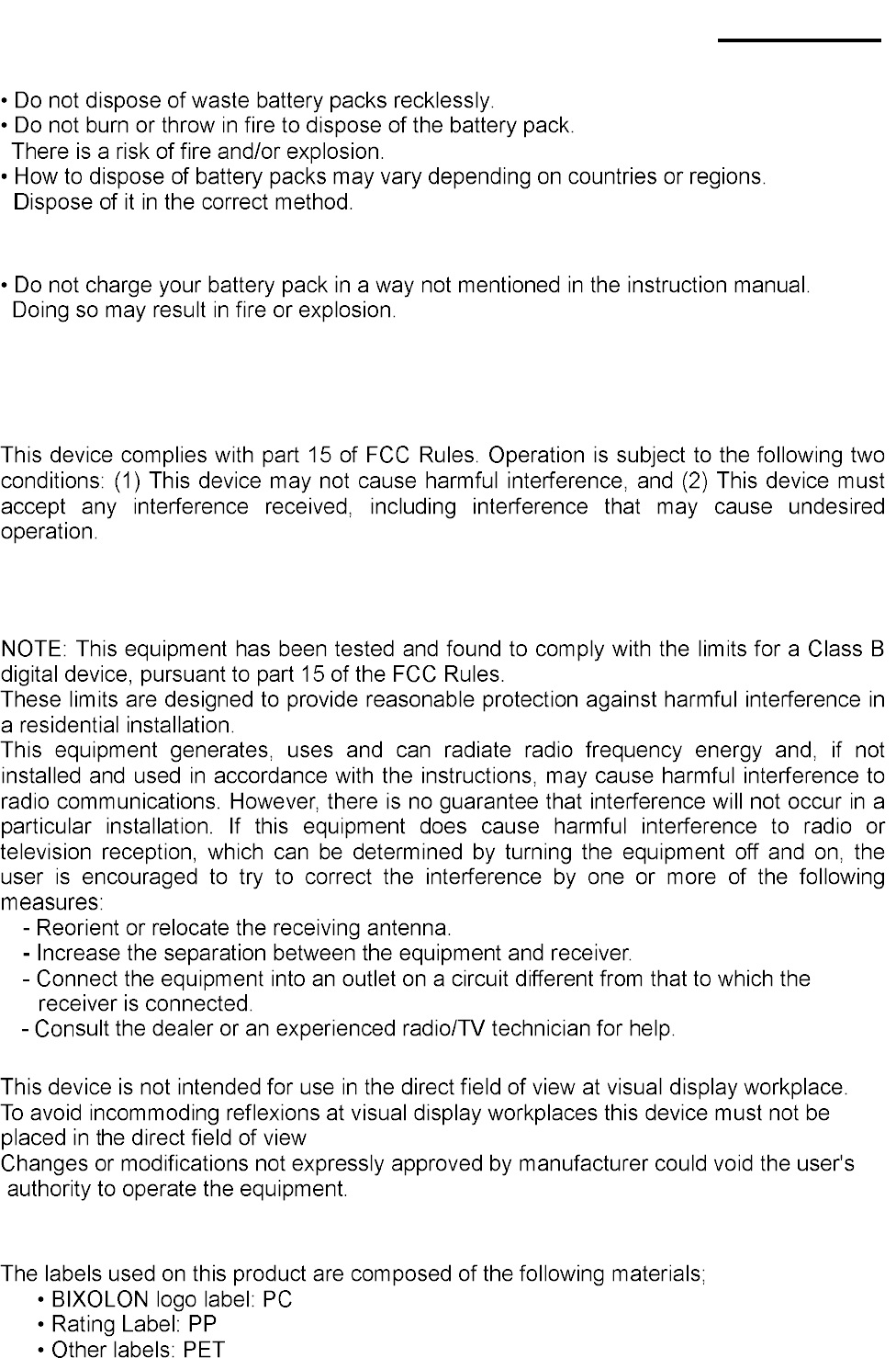FCC compliance Information