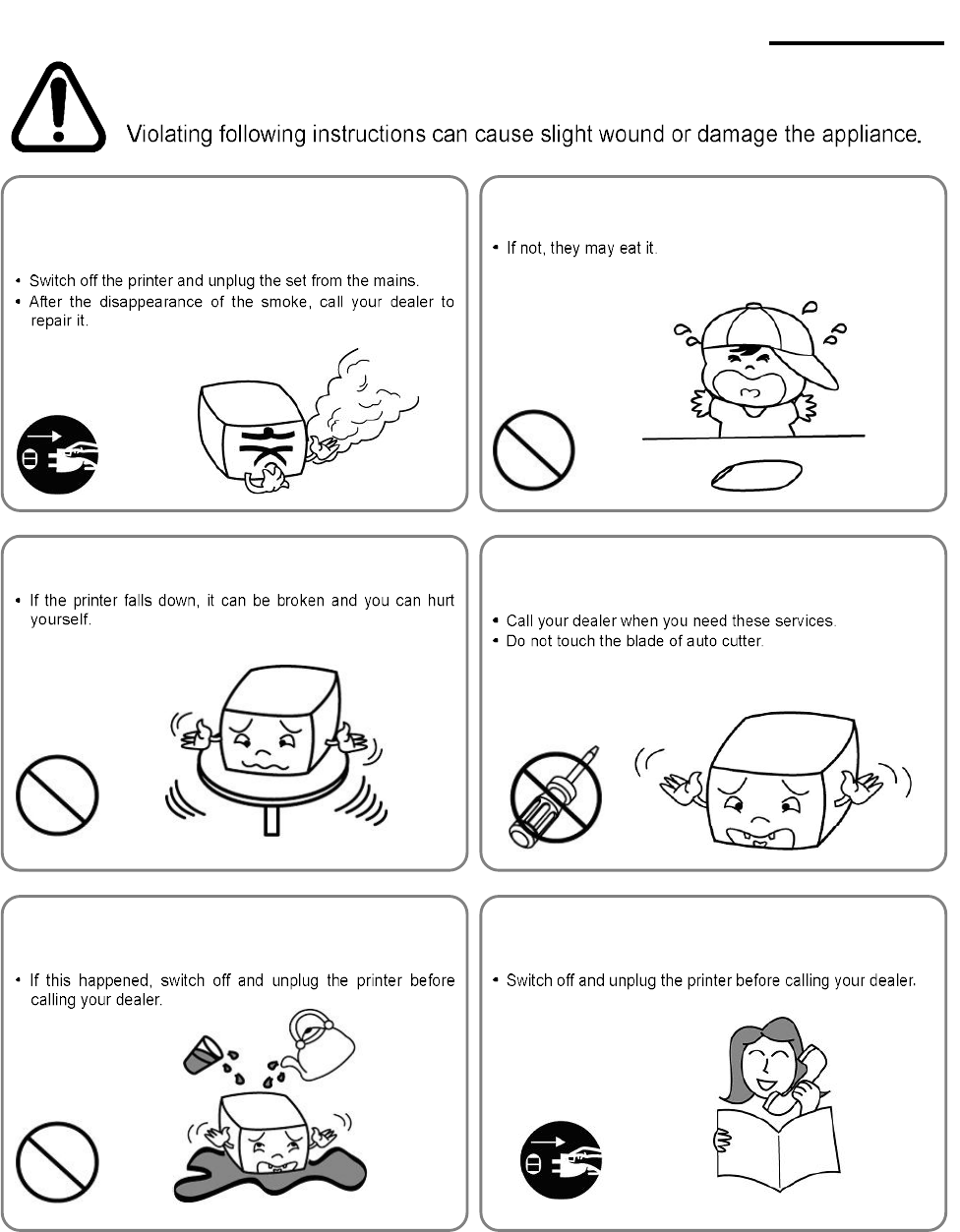 Do not use the printer when it is out of order. This