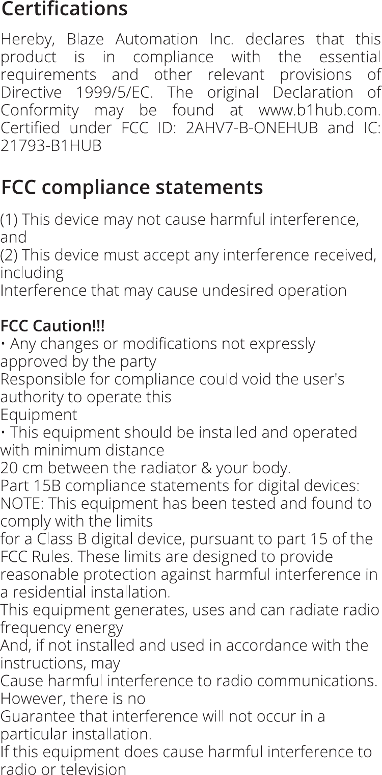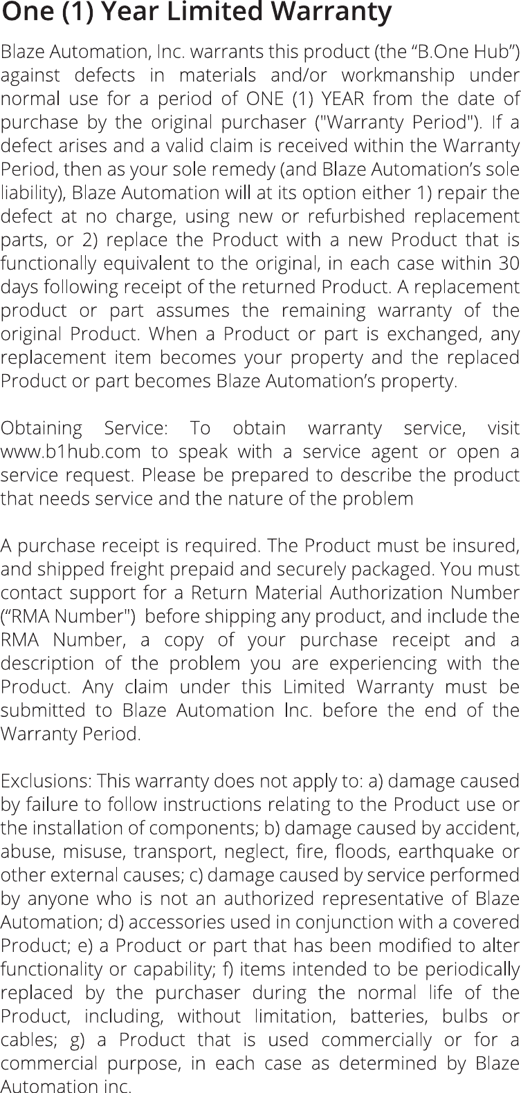 BLAZE AUTOMATION INC B.One Hub sm