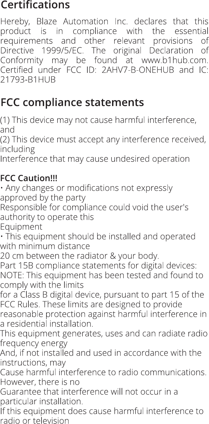 BLAZE AUTOMATION B-ONEHUB B.One Hub User Manual sm