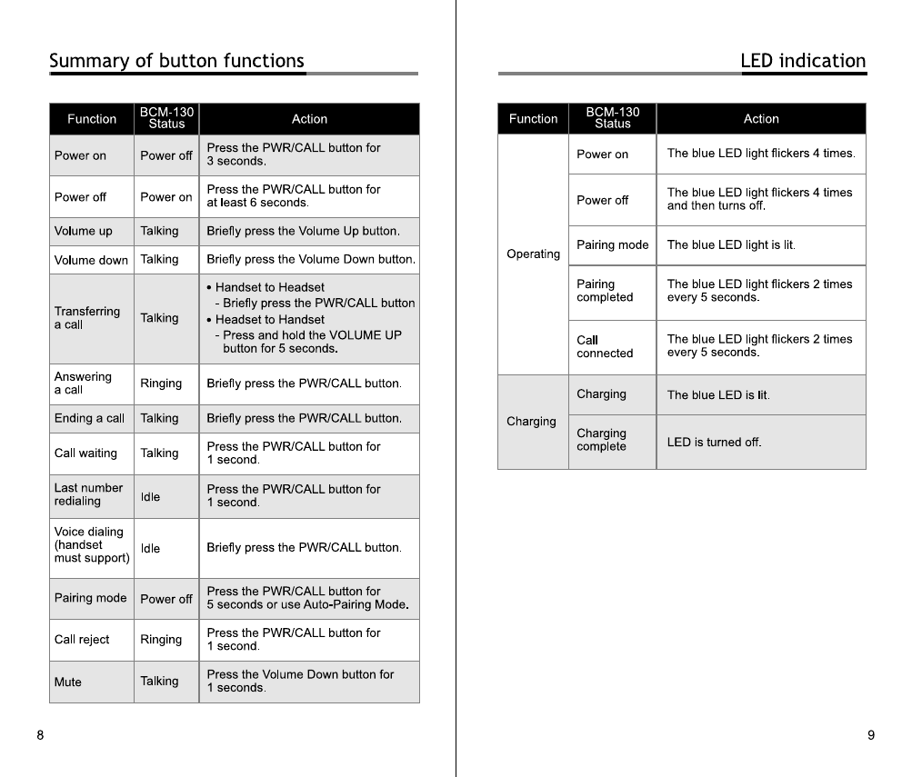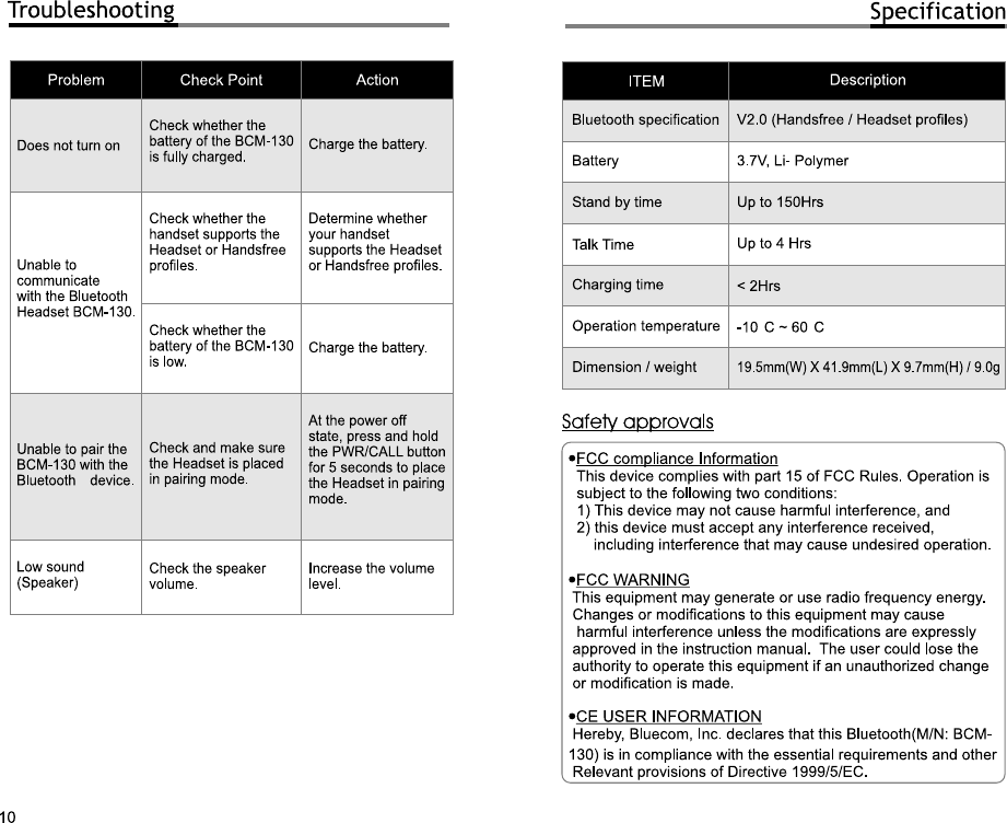 BLUECOM BCM130 BLUETOOTH HEADSET User Manual users manual