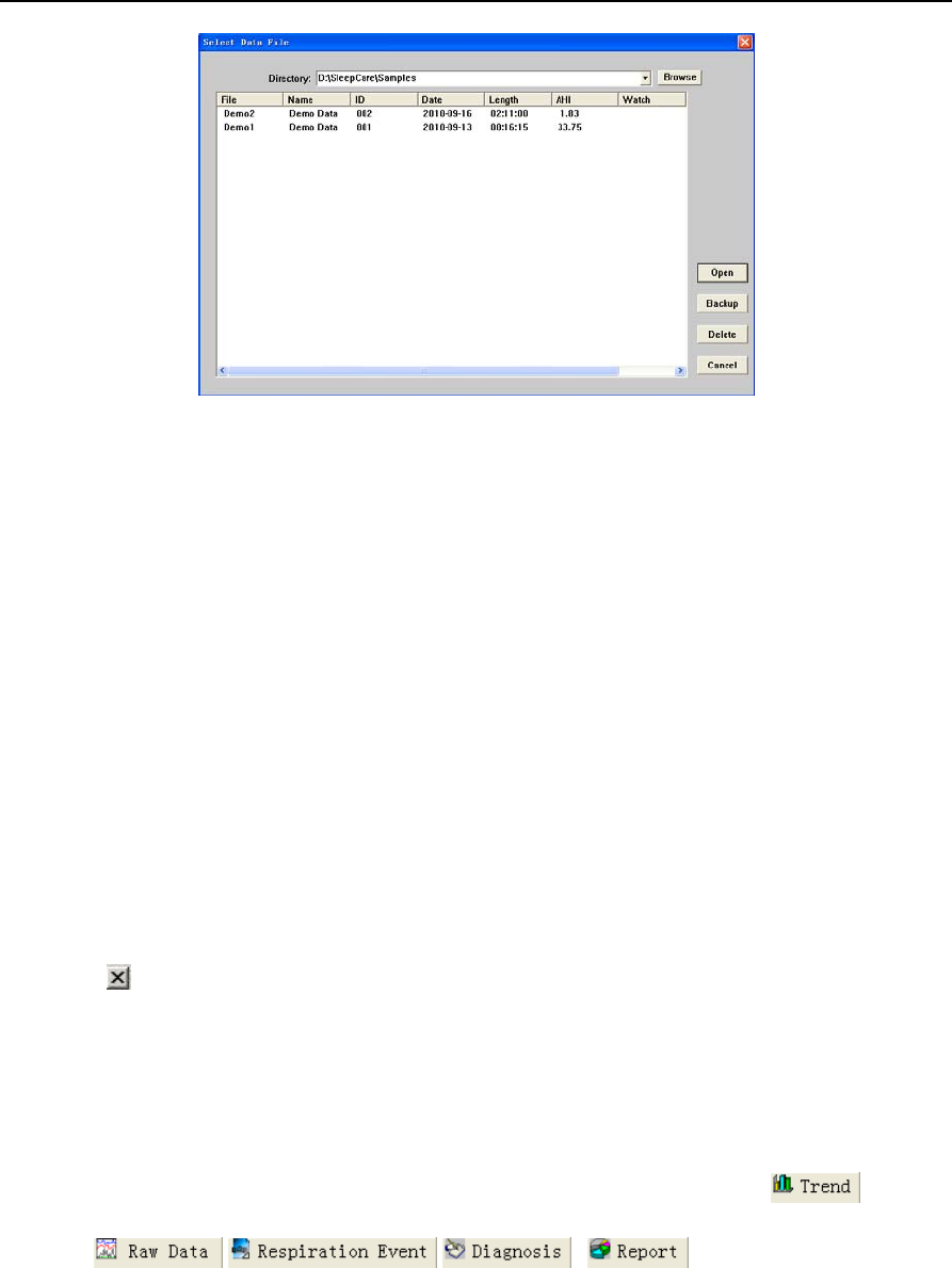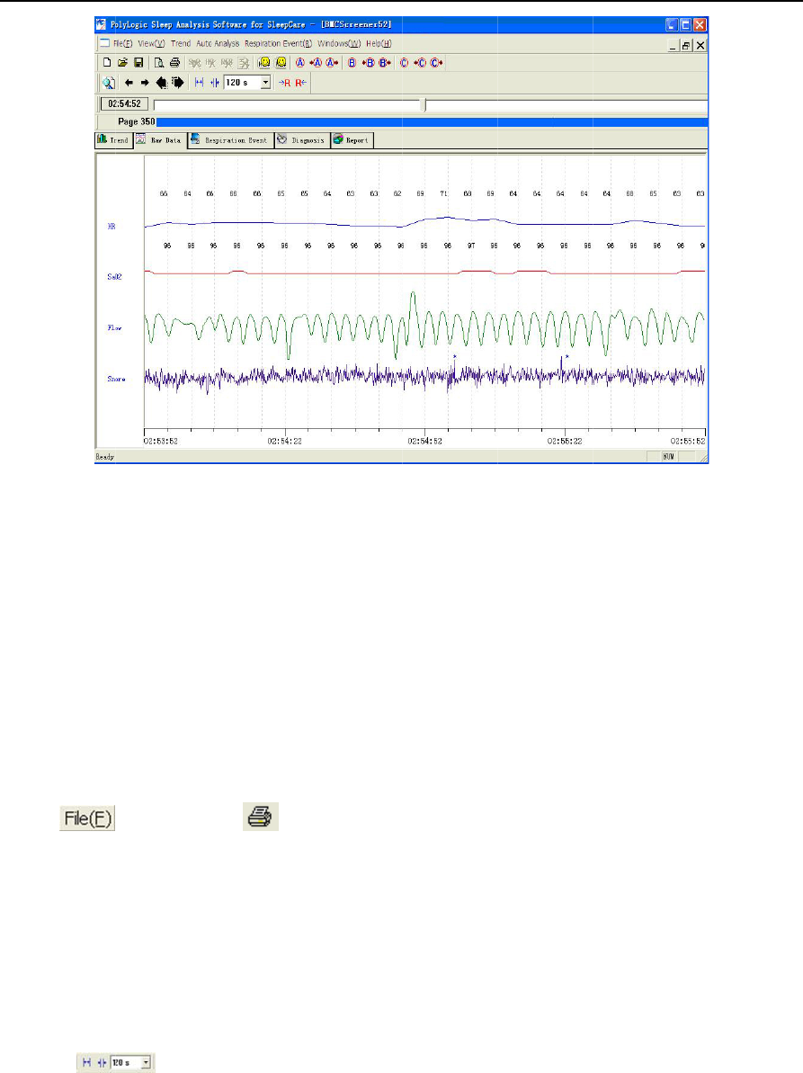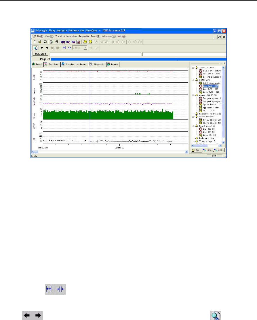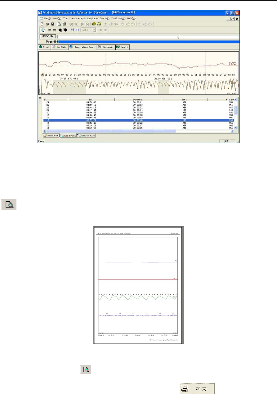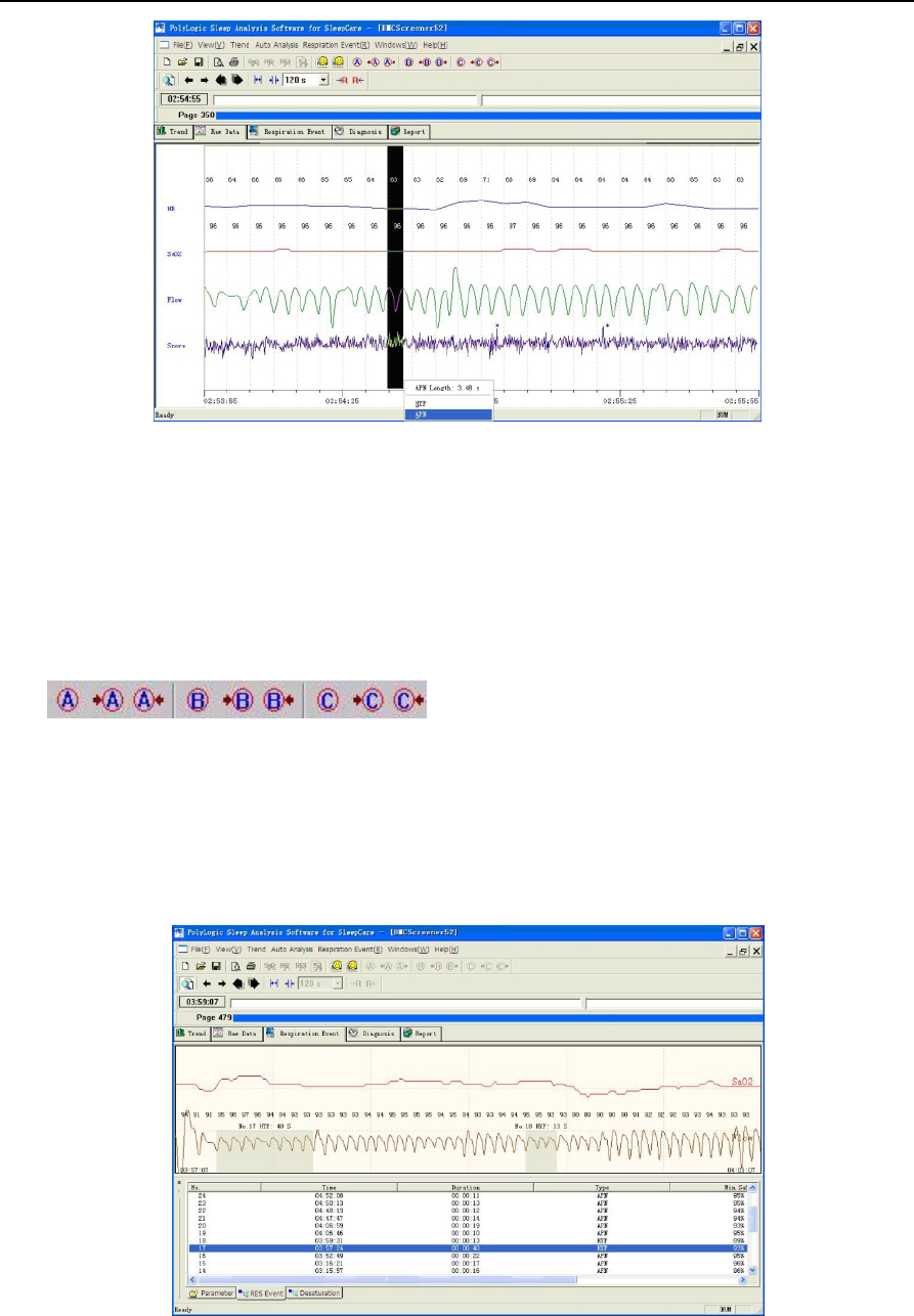 Clicking on the list or using the〔↑〕、〔↓〕key on keyboard may choose any event in the respiration event