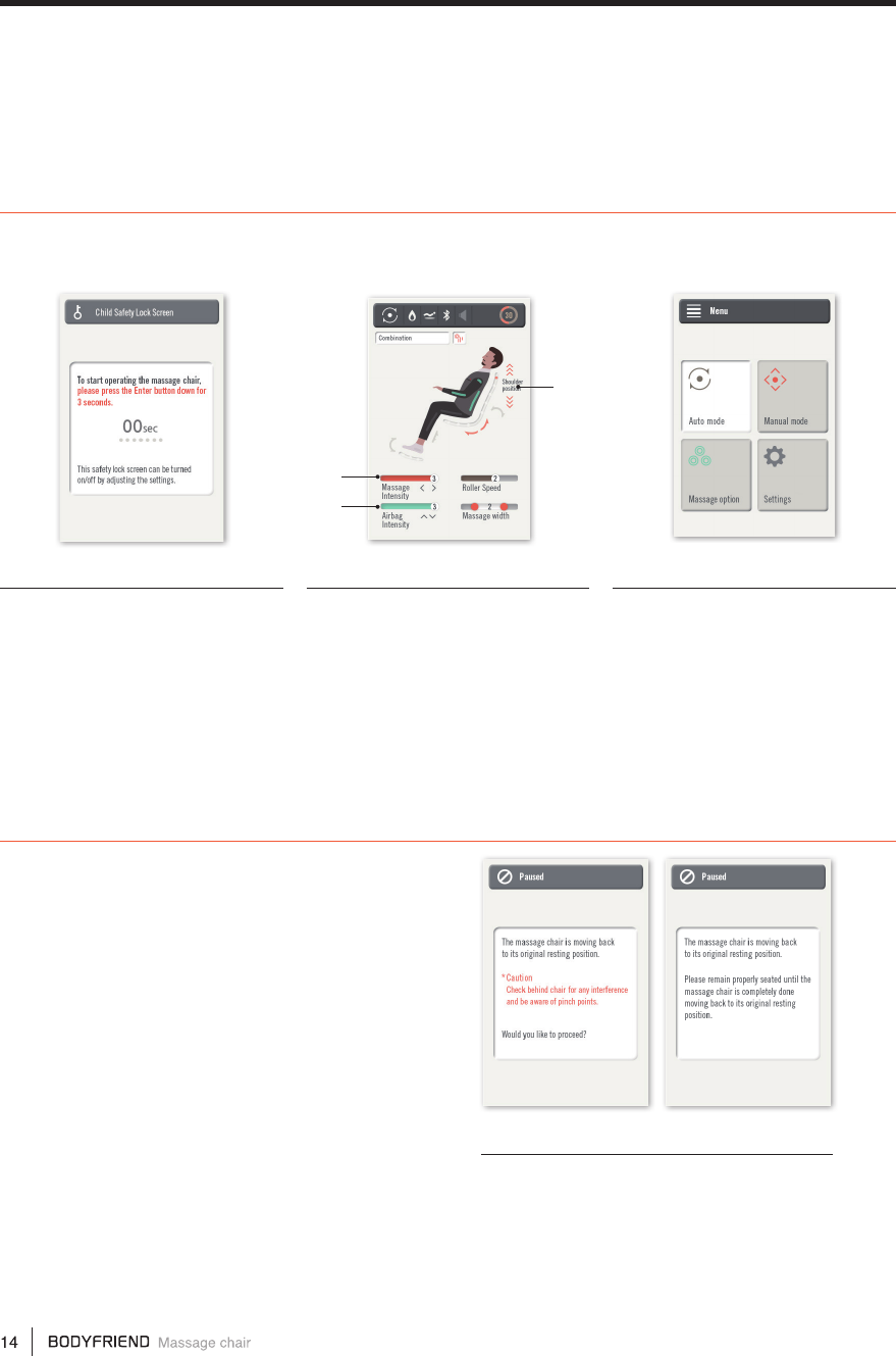 Massage time has nished. Restart the massage after 30 minutes.