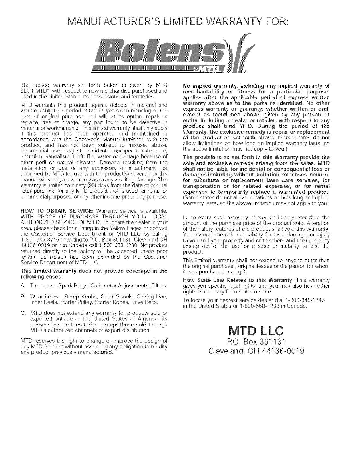 User Manual: BOLENS BOLENS Cultivator Manual BOLENS Cultivator Owner's Manual, BOLENS Cultivator installation guides