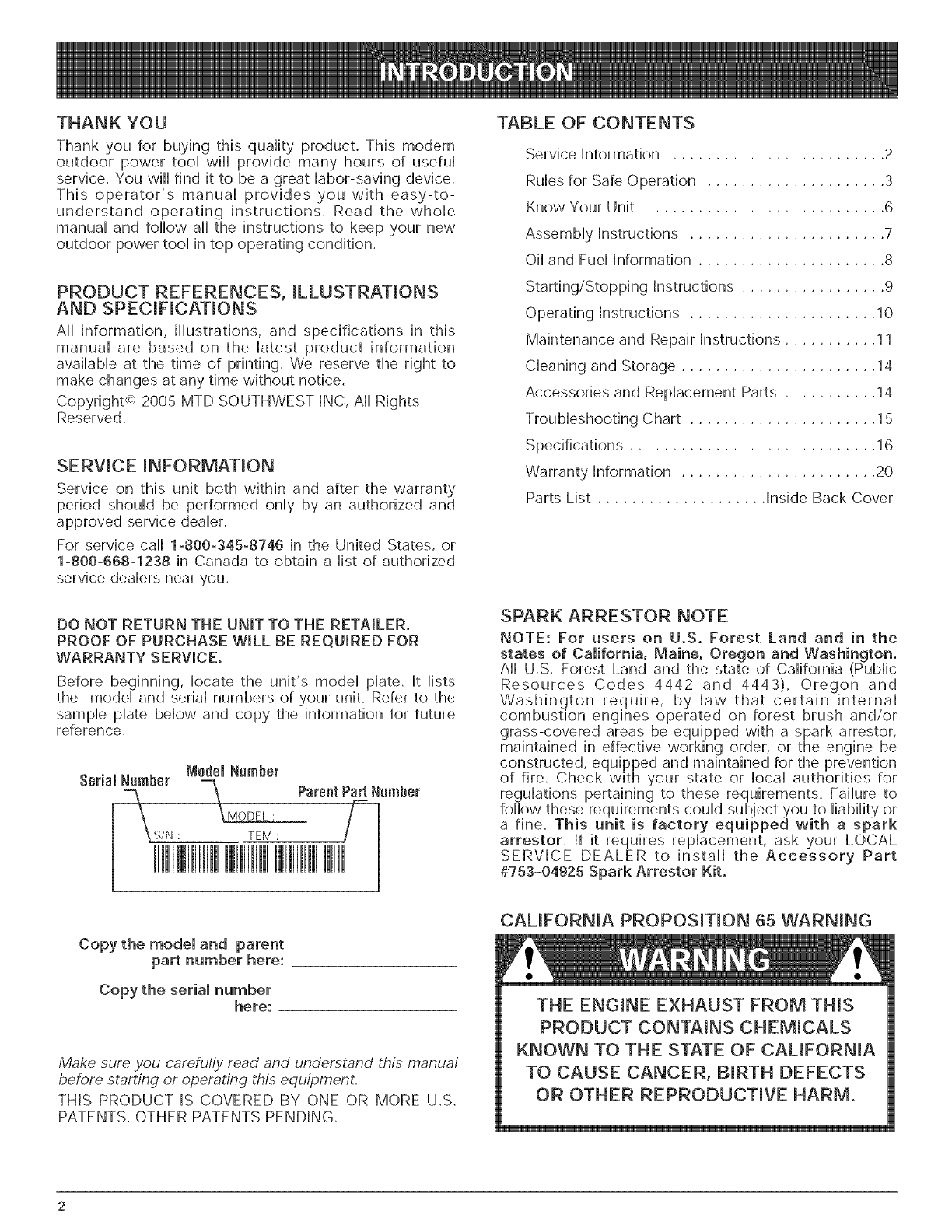 Copyright#_ 2005 MTD SOUTHWEST INC, All Rights