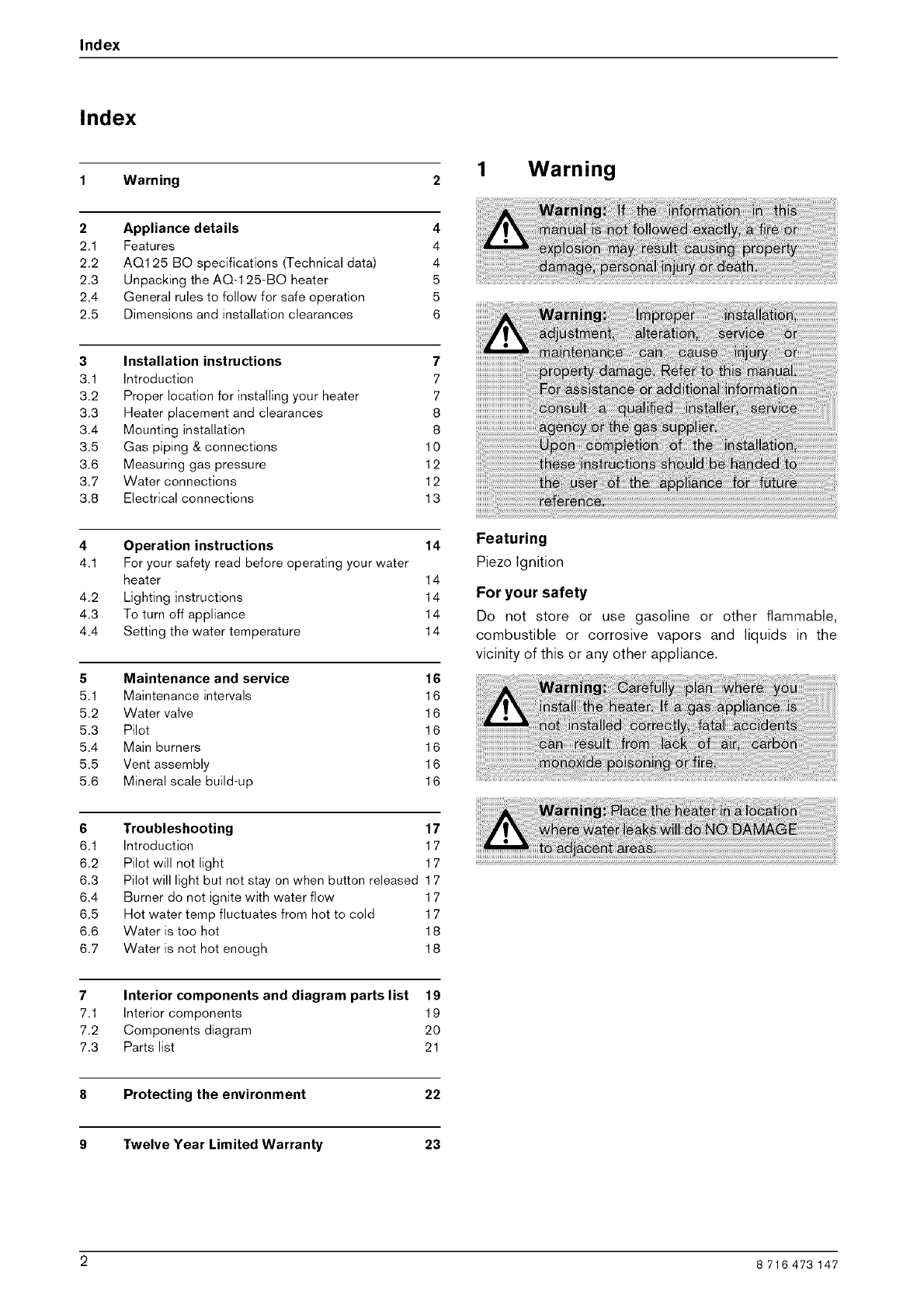 User Manual: BOSCH BOSCH Water heater, Gas Manual BOSCH Water heater, Gas Owner's Manual, BOSCH Water heater, Gas installation guides