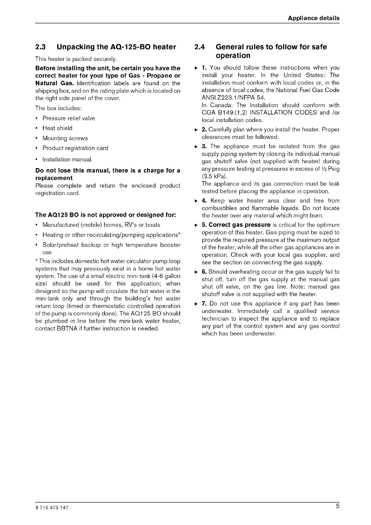 2.3 Unpacking the AQ-1 25-BO heater 5