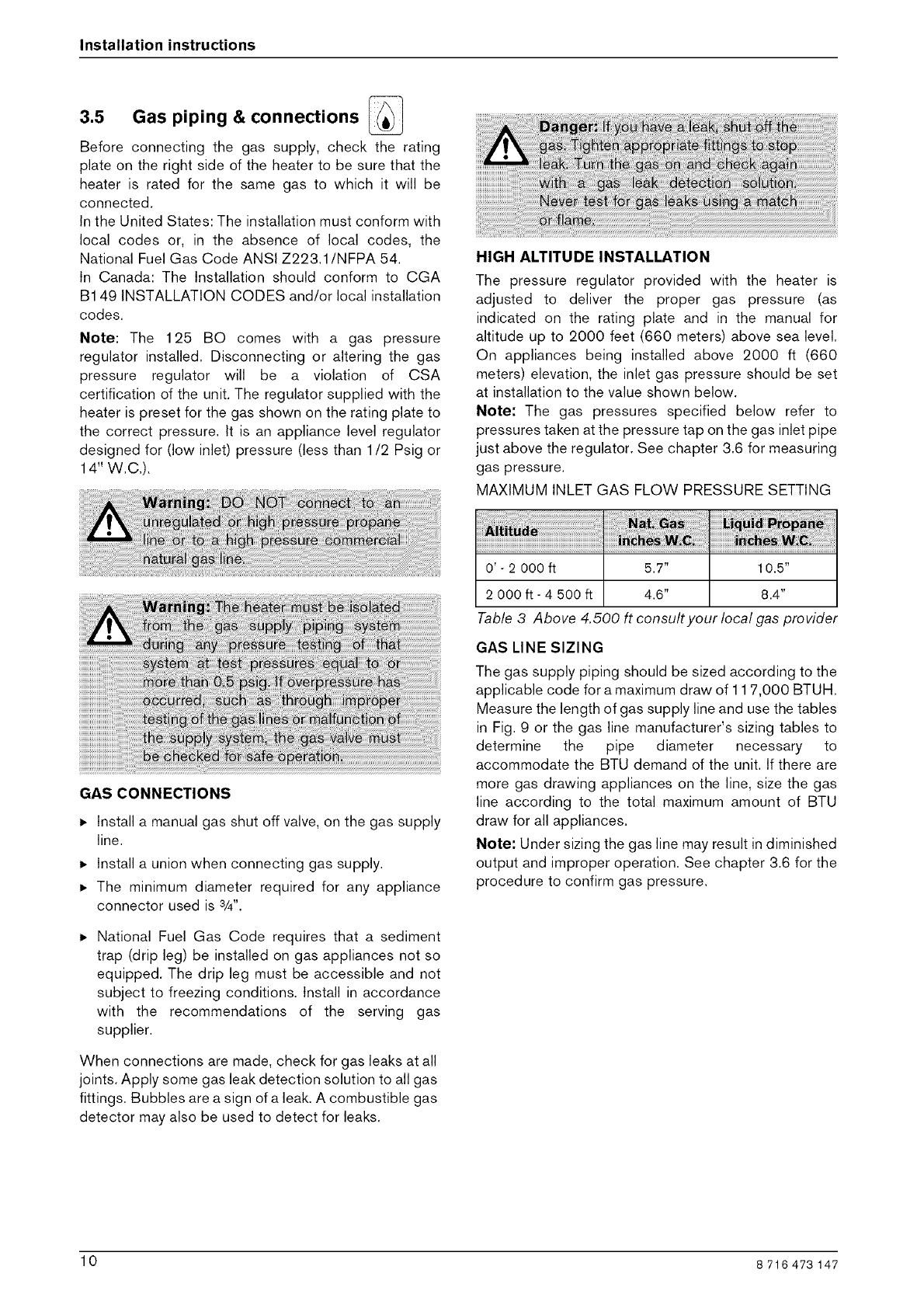 * See Chapter 3.6 and gas pressure table (to be filled out by installer)