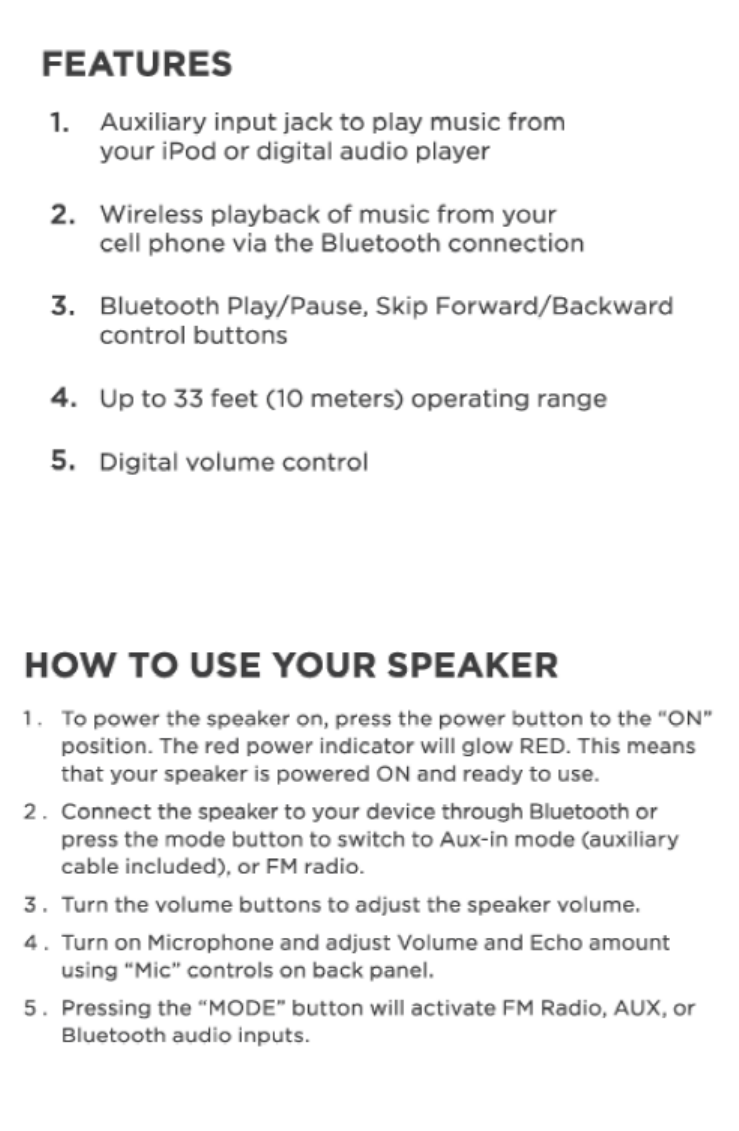 BOVI ELECTRICAL APPLIANCE BV-JB005 Bluetooth speaker User Manual