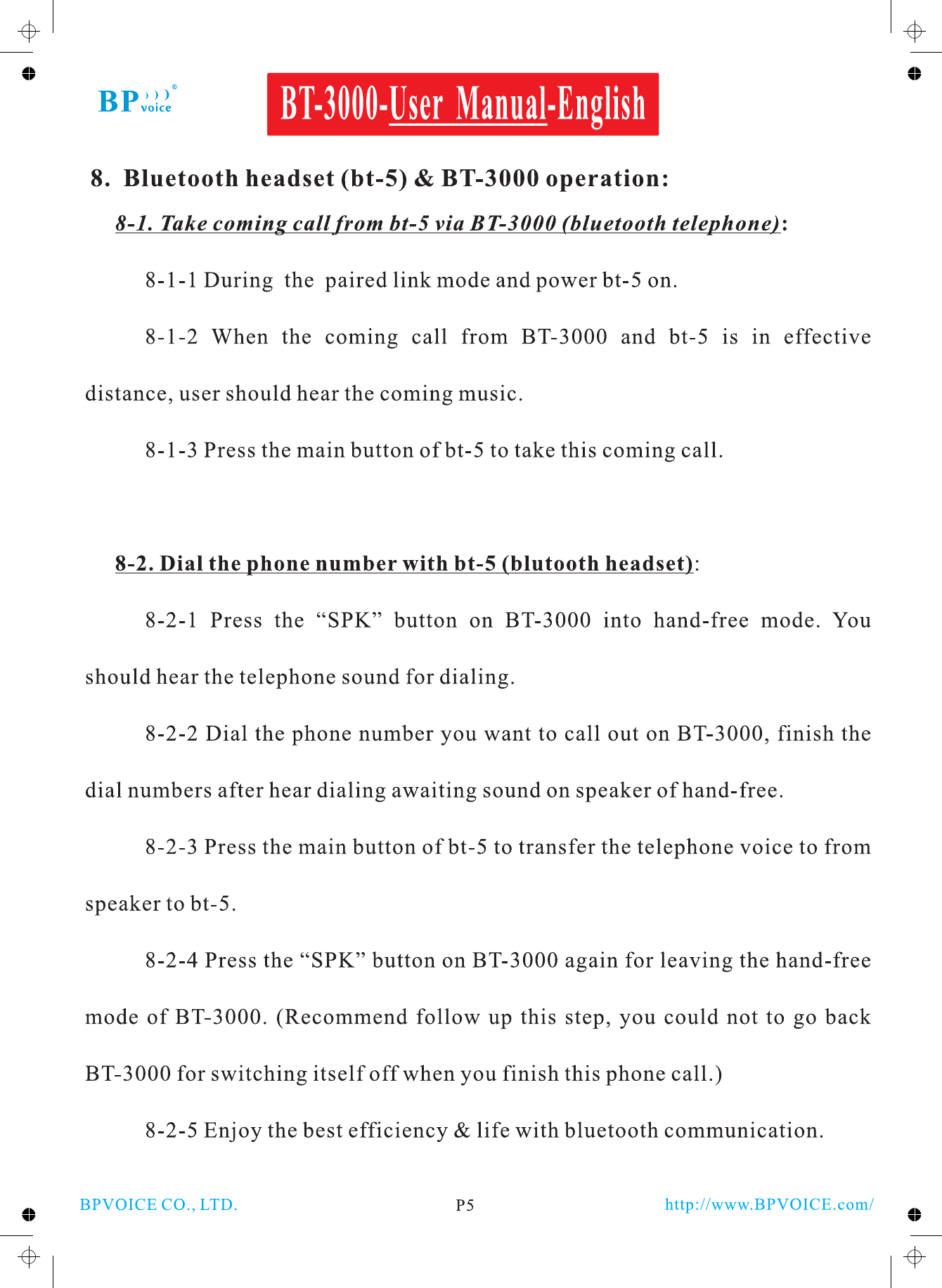 BPVOICE CO., LTD. Bluetooth Telephone