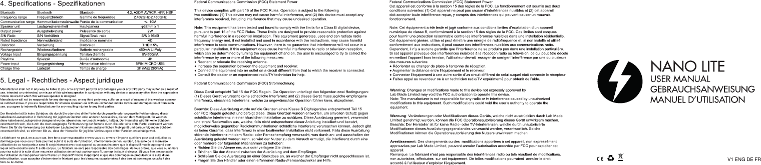 BRANDCHARGER NANOLITE Bluetooth Speaker User Manual