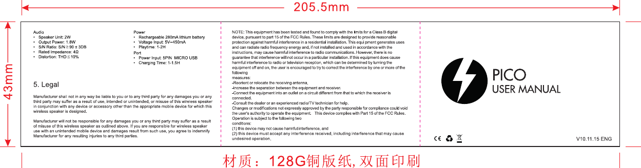 BRANDCHARGER PICO Bluetooth Speaker User Manual Manual of B43 FCC