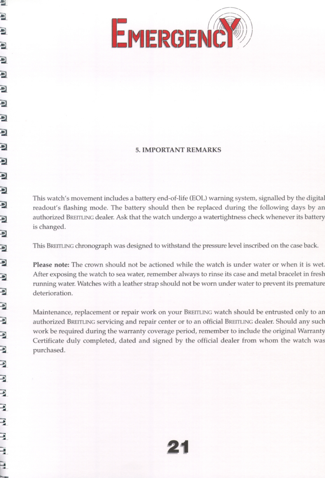 - 7. Part seven of eight of the Breitling Emergency user manual
