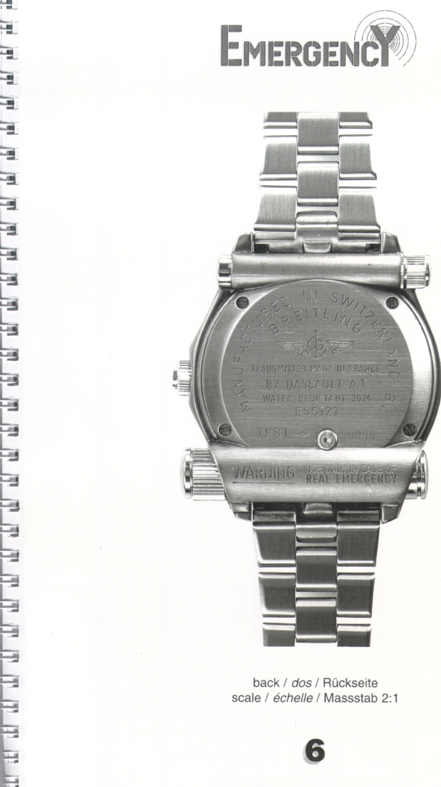 BREITLING USA E56X21-Y Back-up survival instrument intended for use in the event of aviation accident. User Manual Part three of eight of the Breitling Emergency