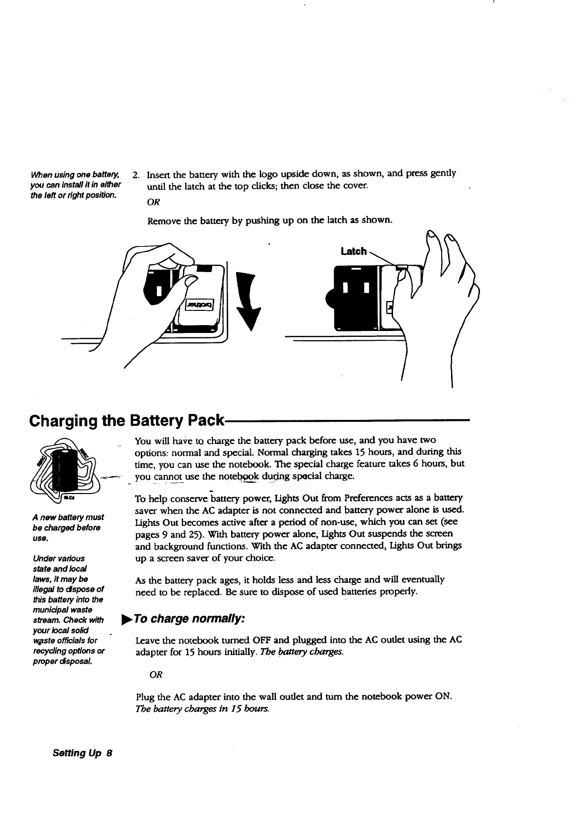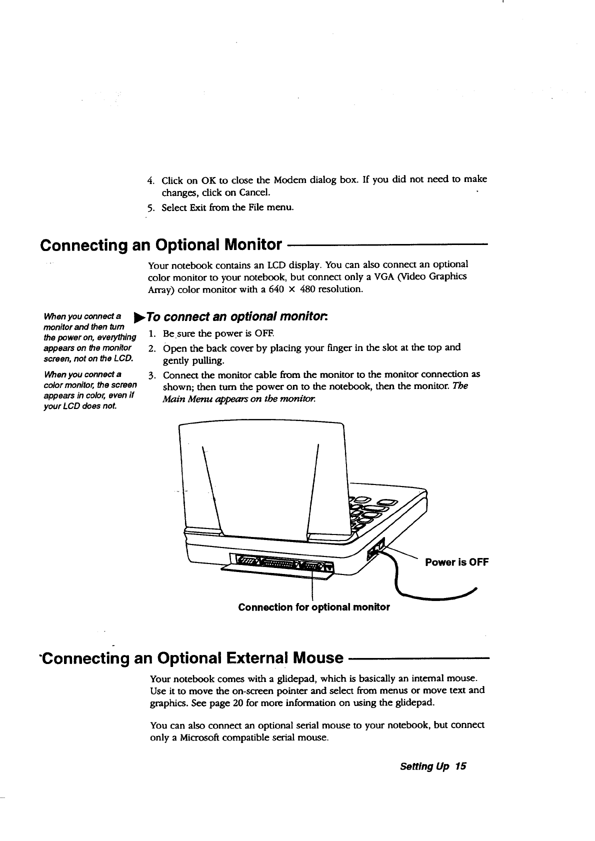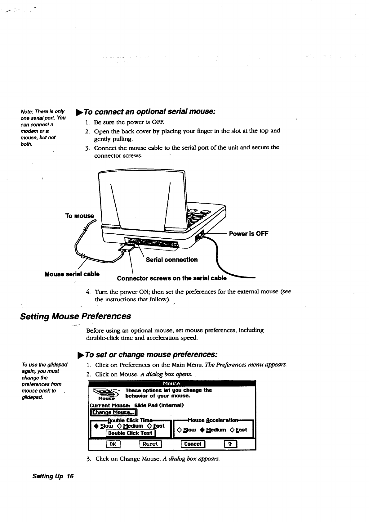 optional serial mouse, and battery charging. See the chapter tiffed
