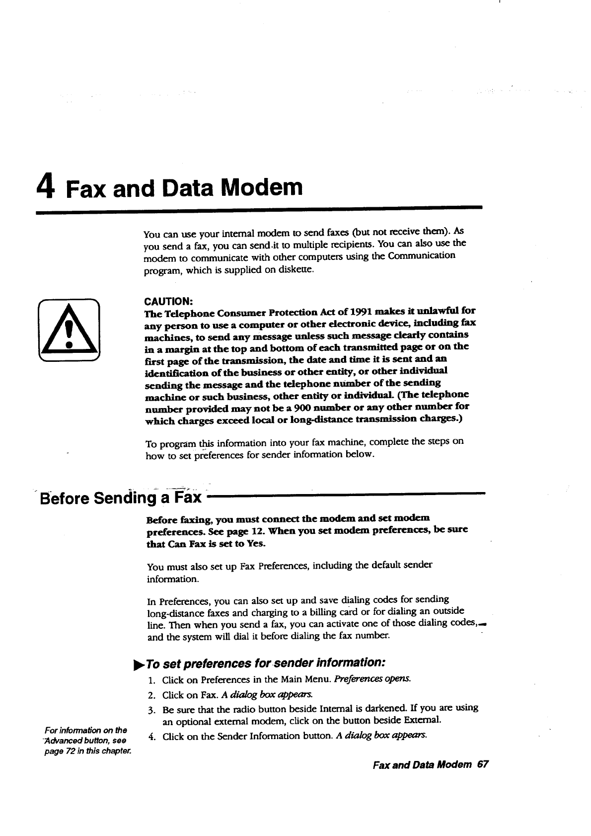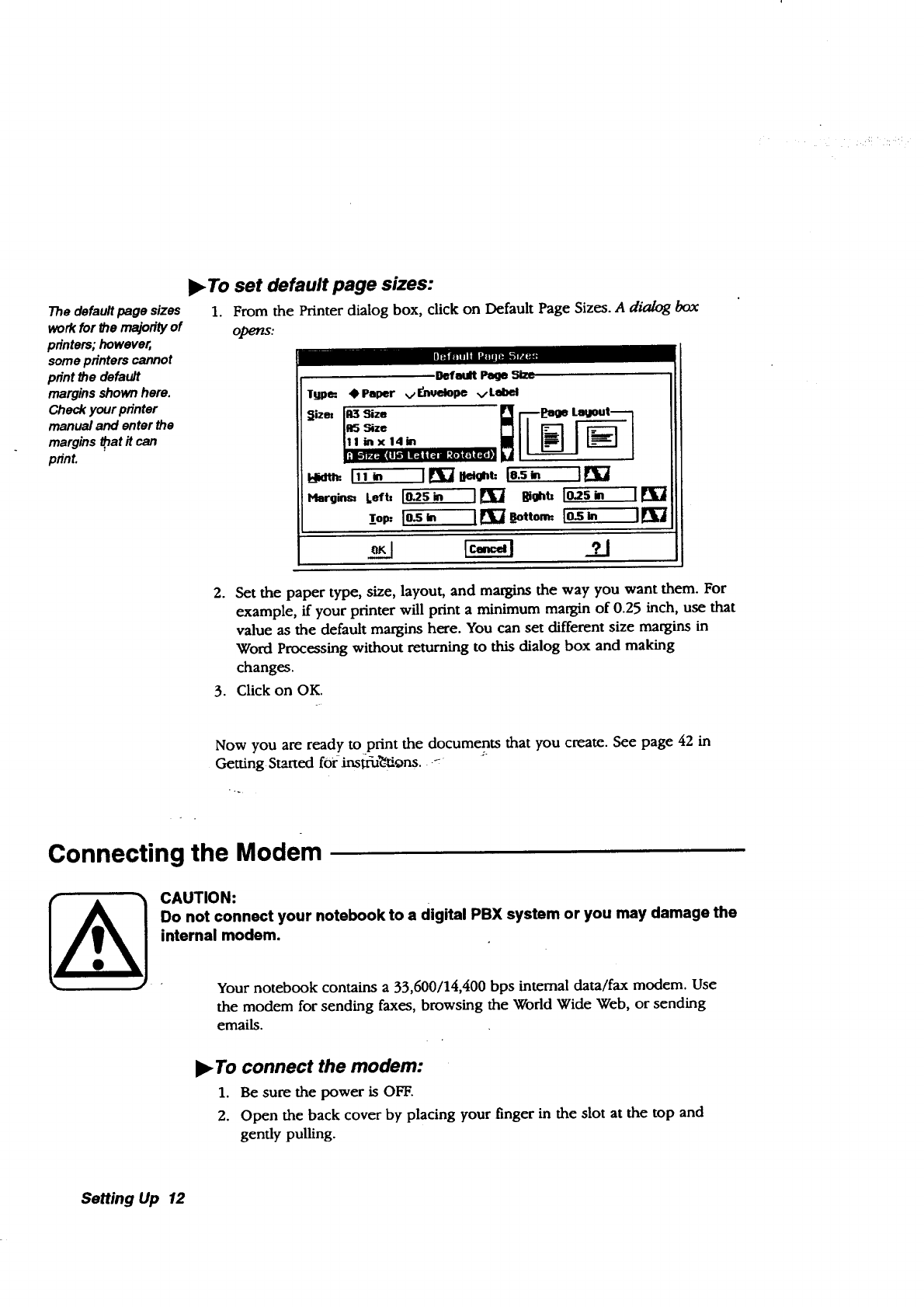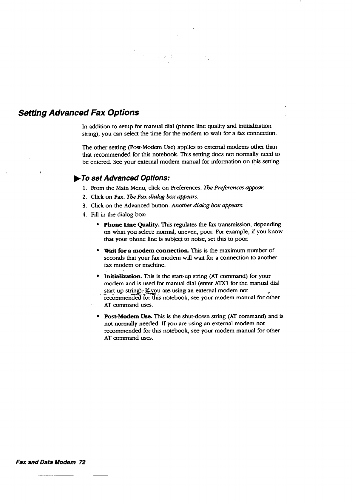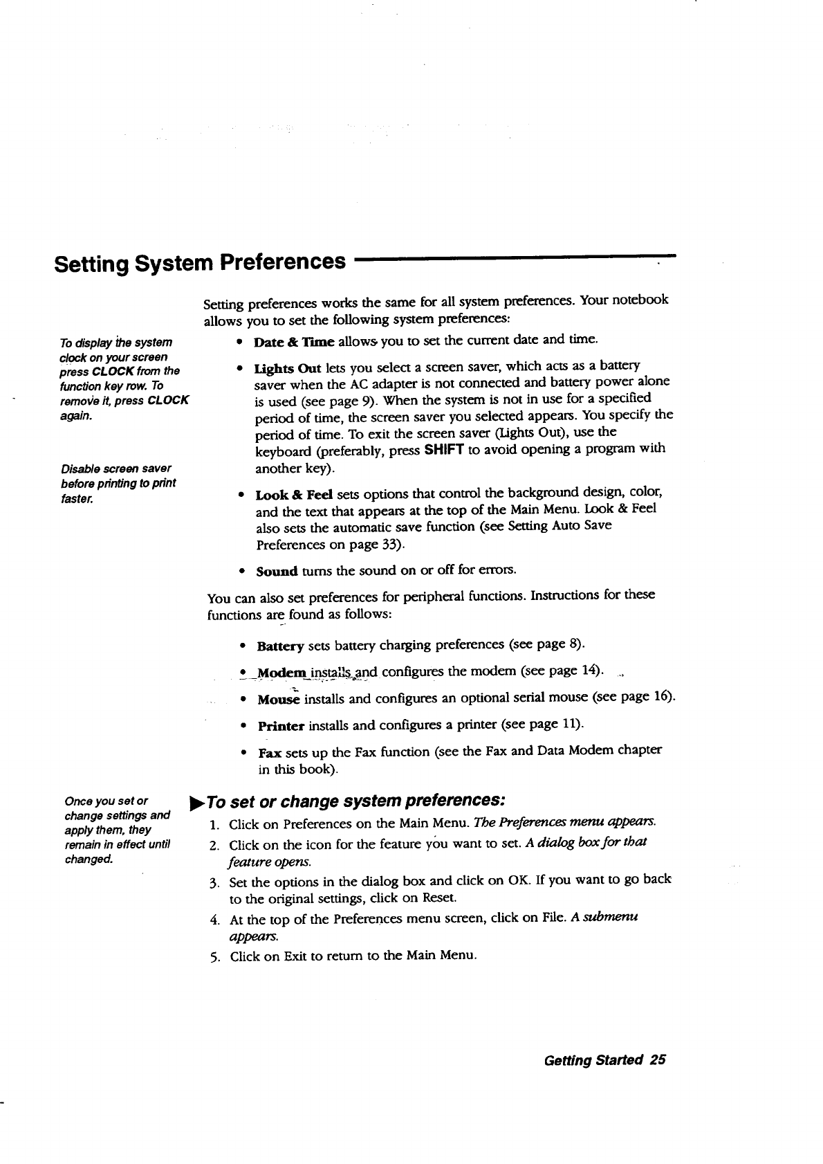 Preferences also provides options for configuring a printer, modem,
