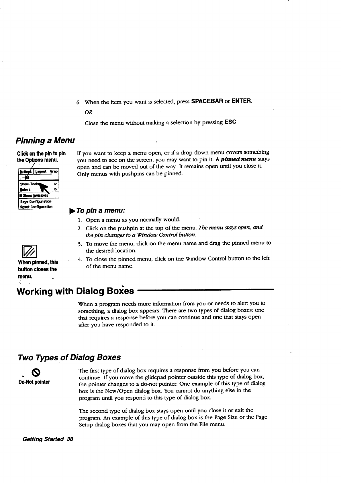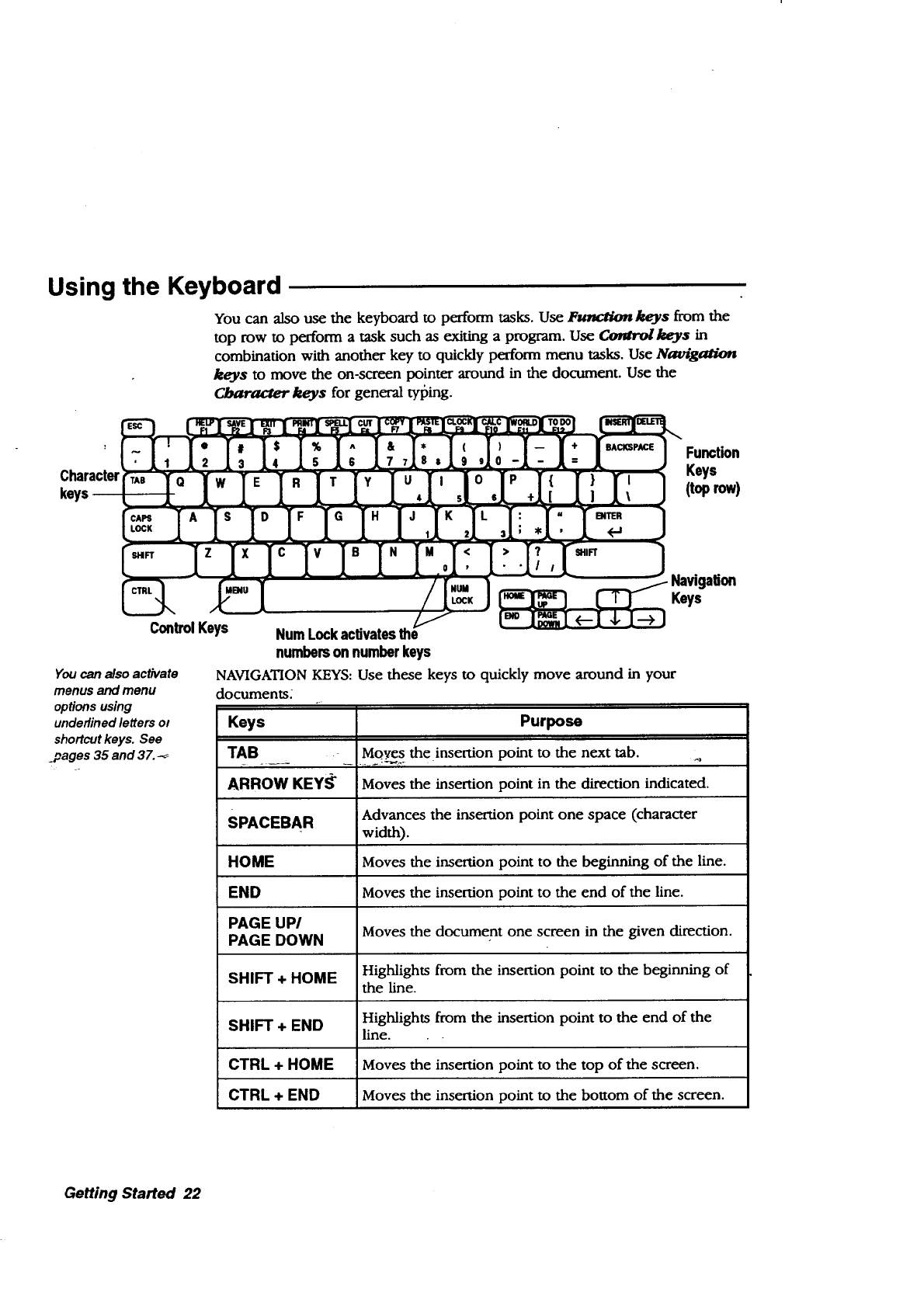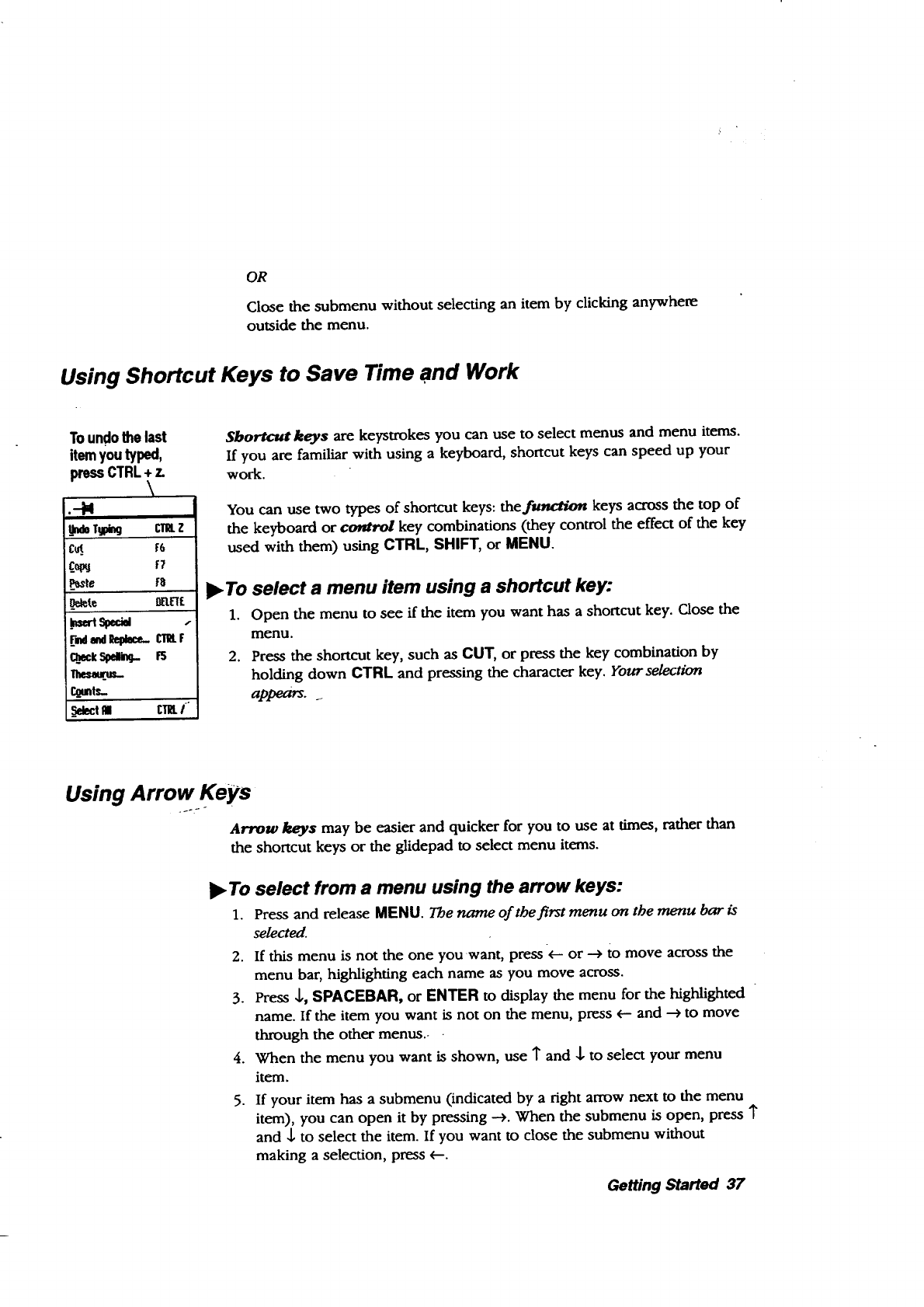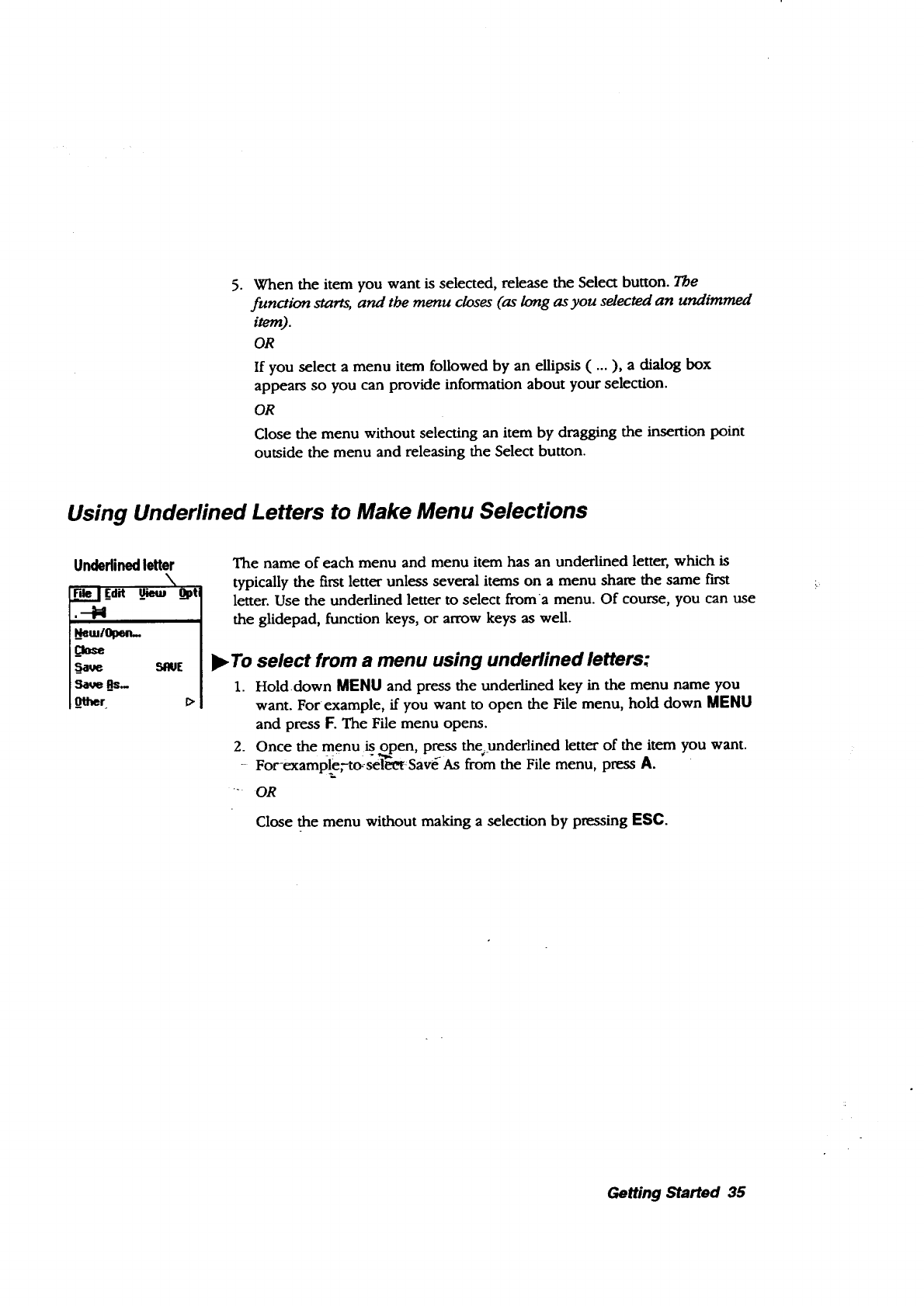 underlined letters, menus, 37