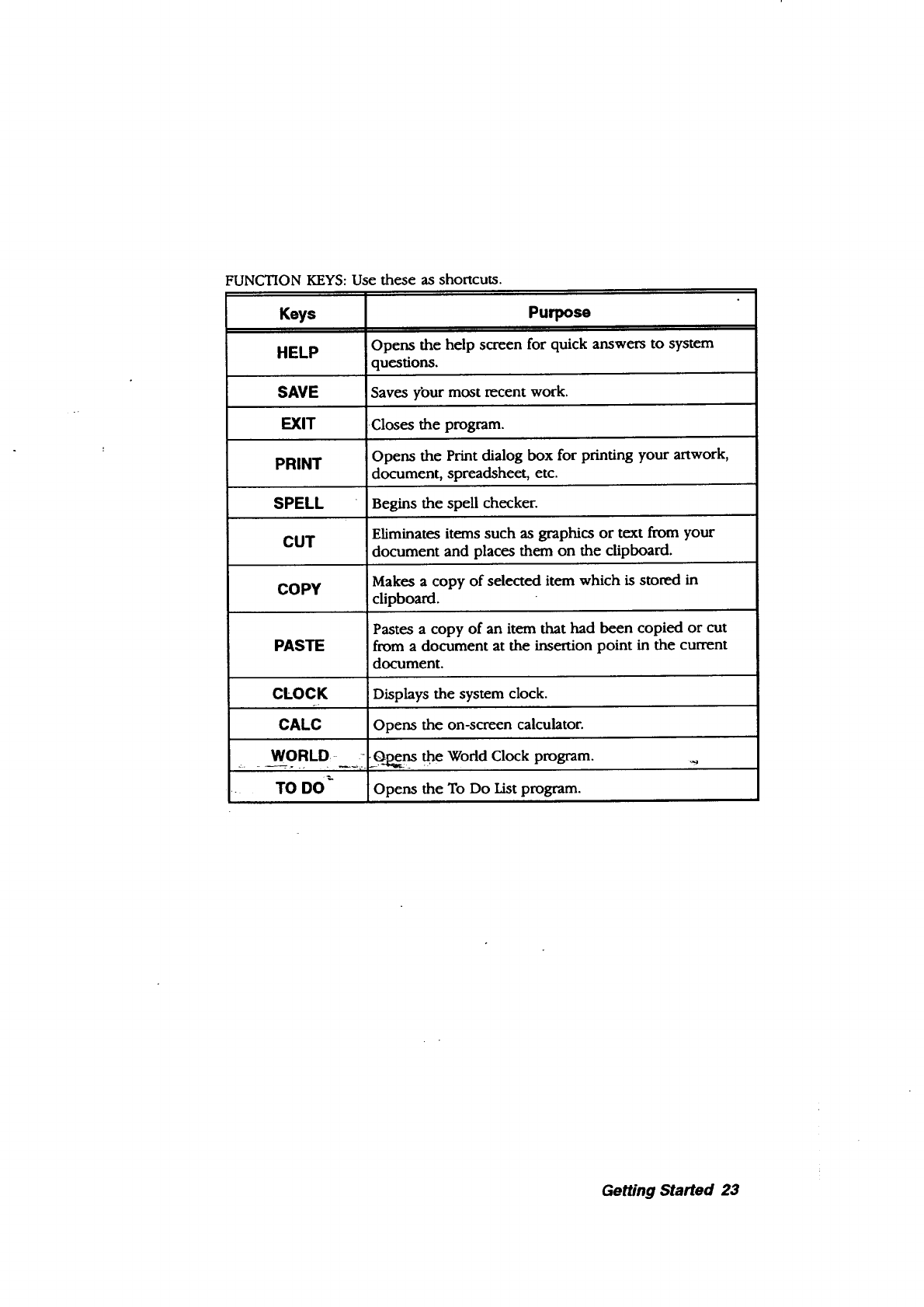 .the function key row to open the To Do List from any program you