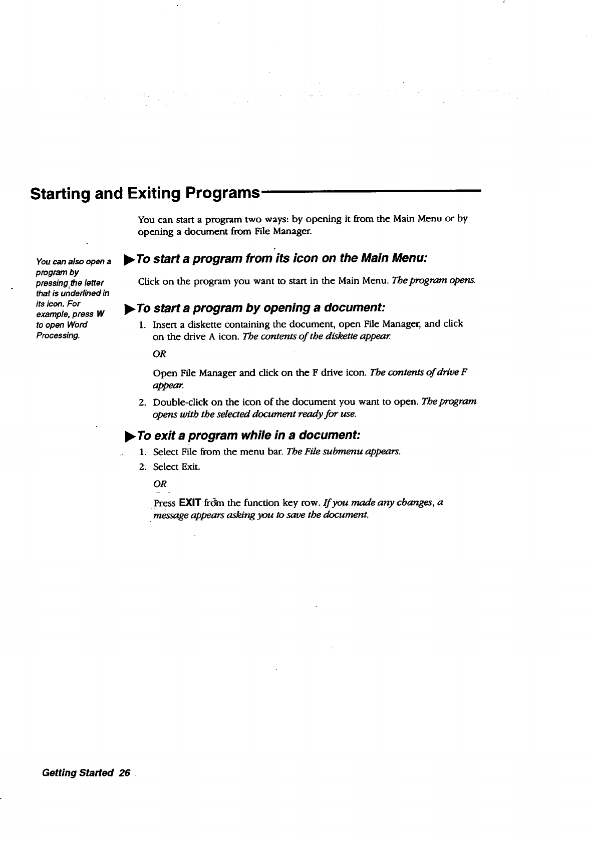 starting and exiting programs,