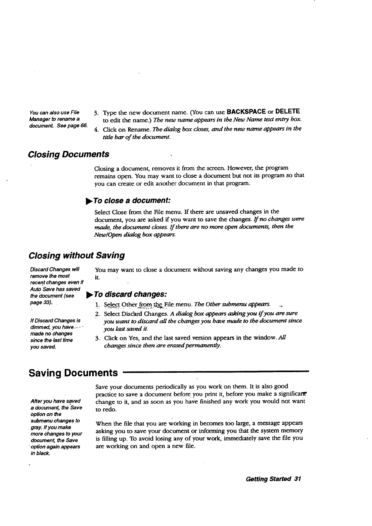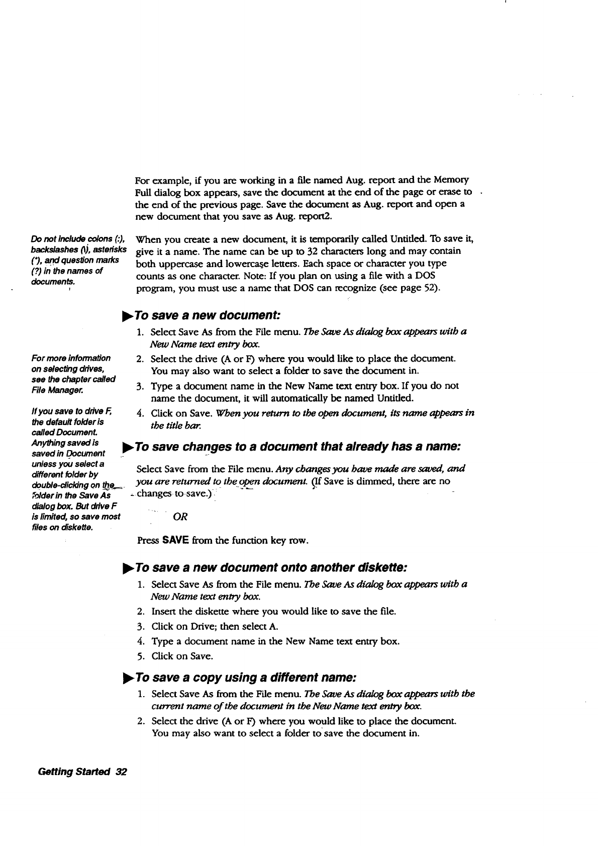 saving documents, memory, 57