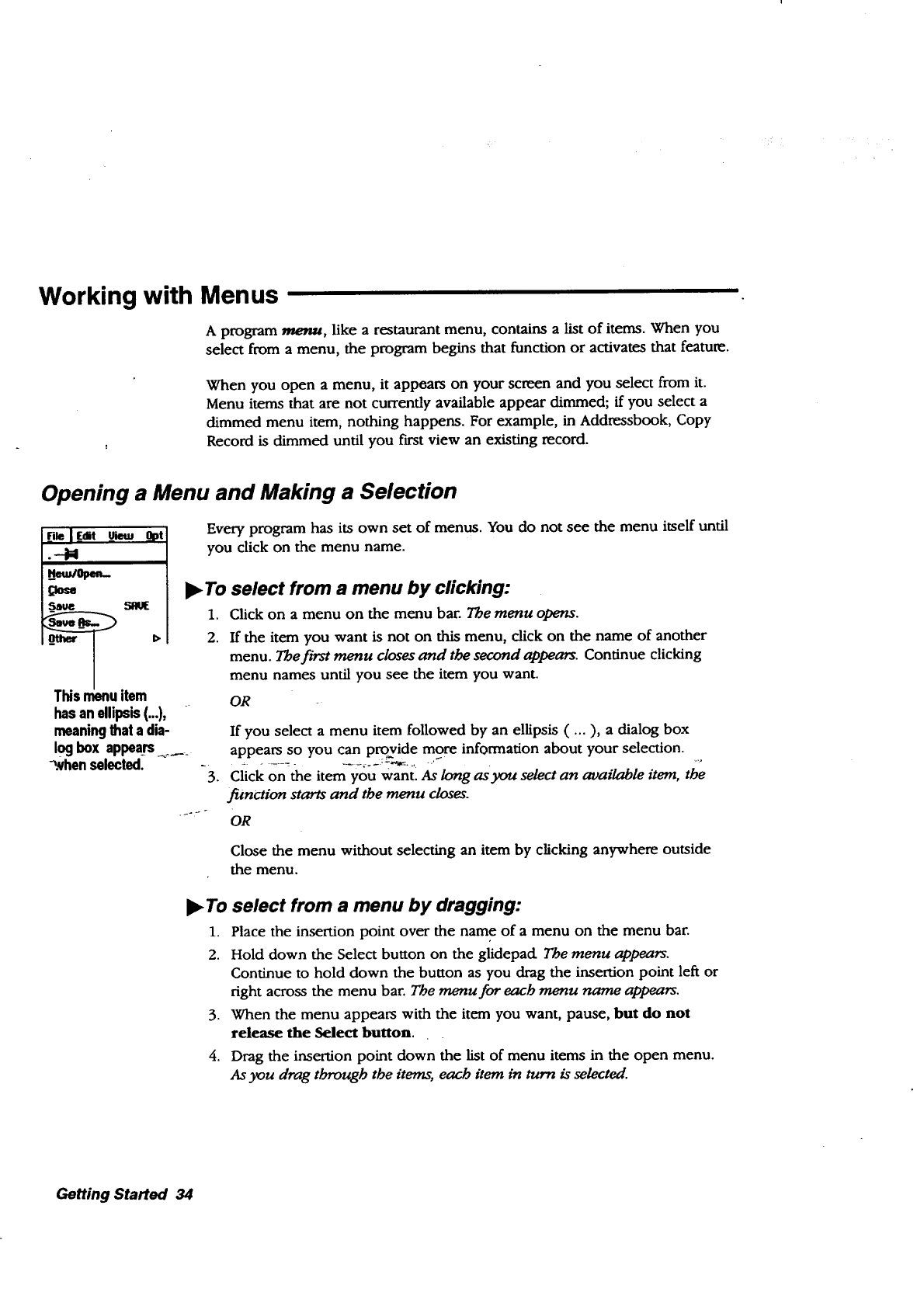 from a menu, 34