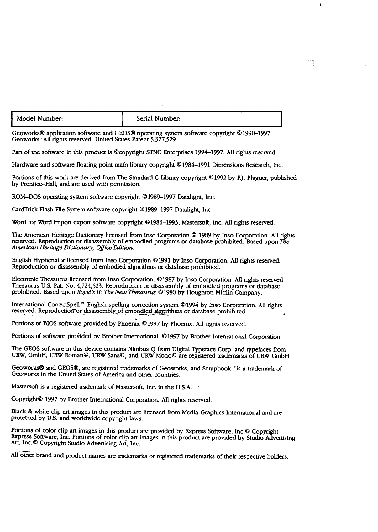 Geoworks® application software and GEOS® operating system software copyright @1990-1997