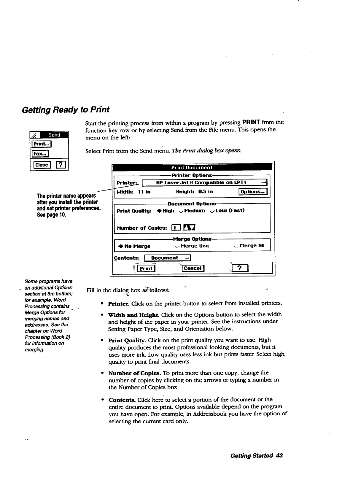 setting up the notebook, getting started using programs, and using File