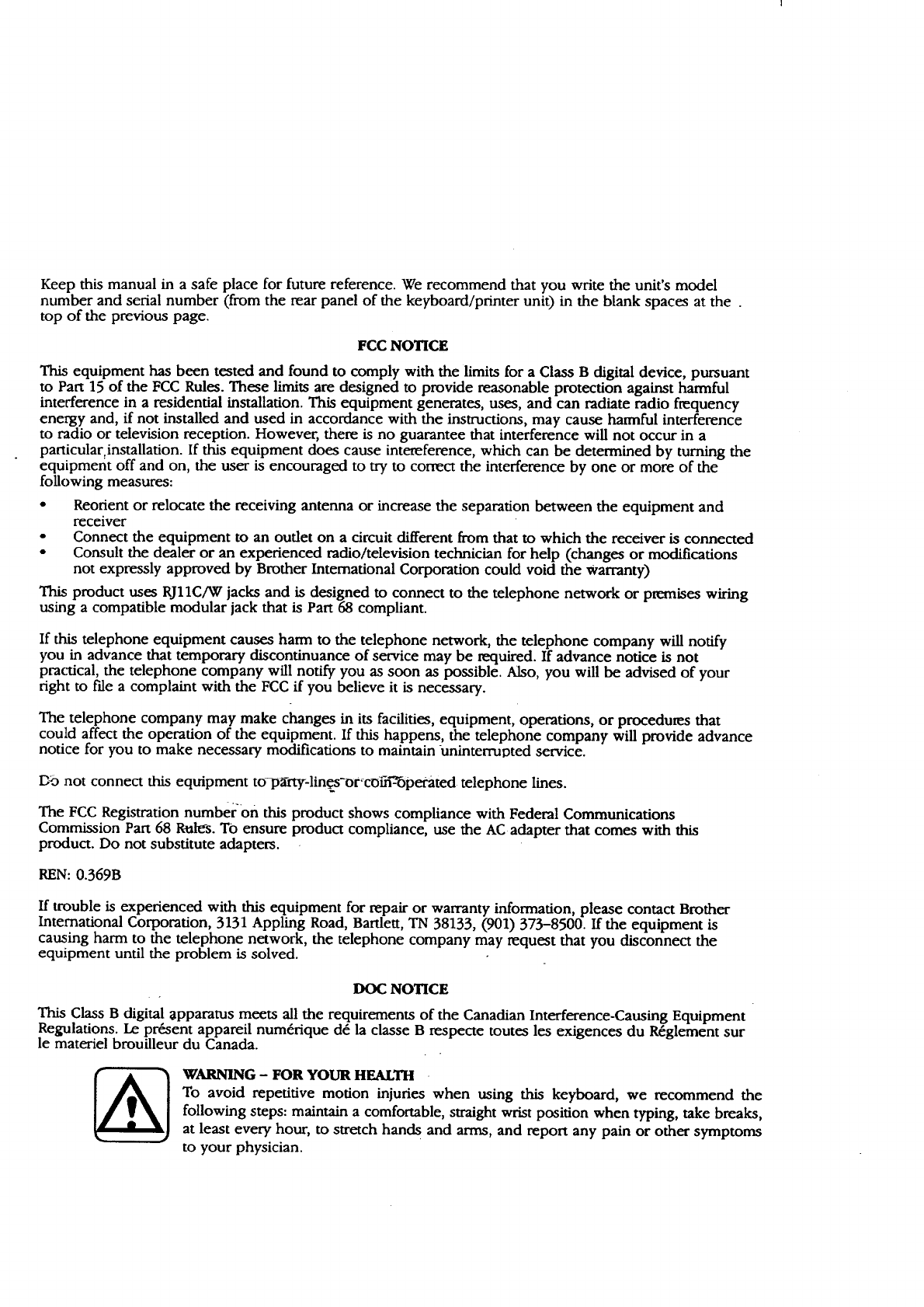 BROTHER Word Processor Manual 98070356