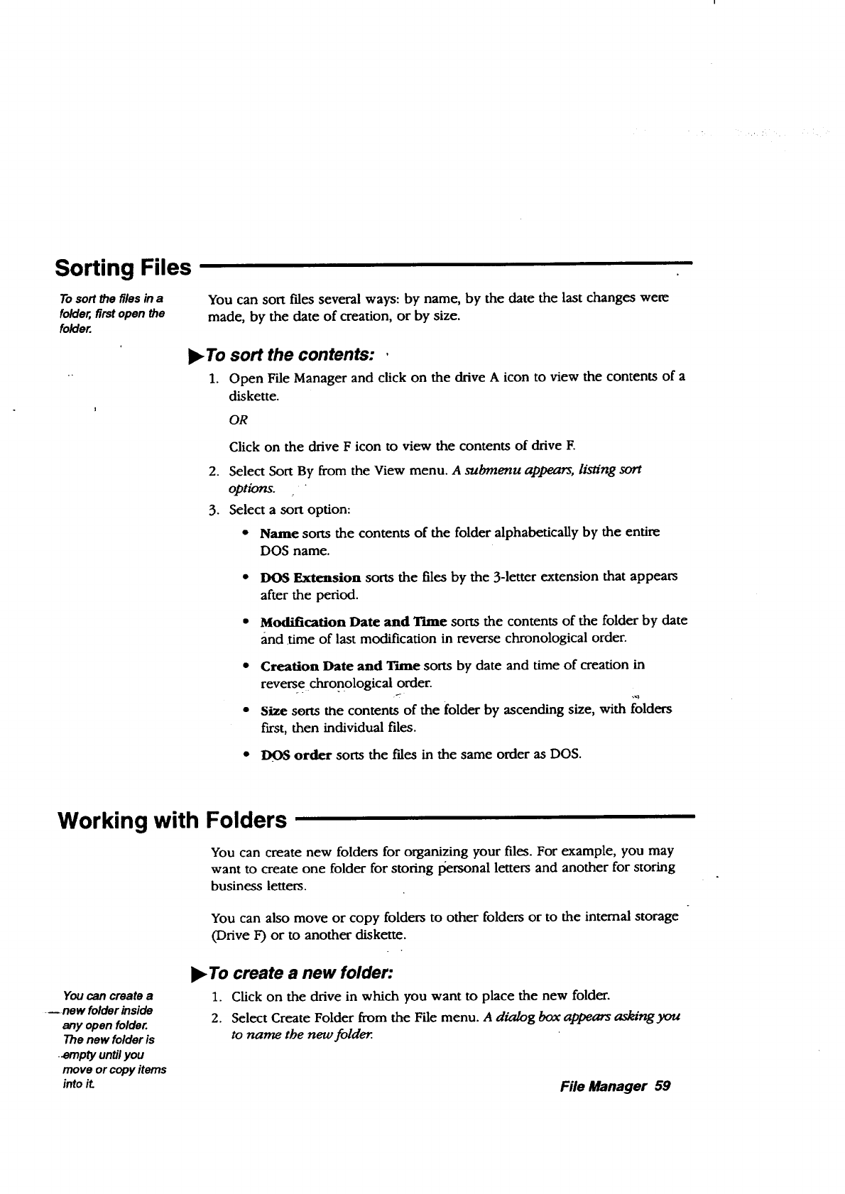files and folders, 59
