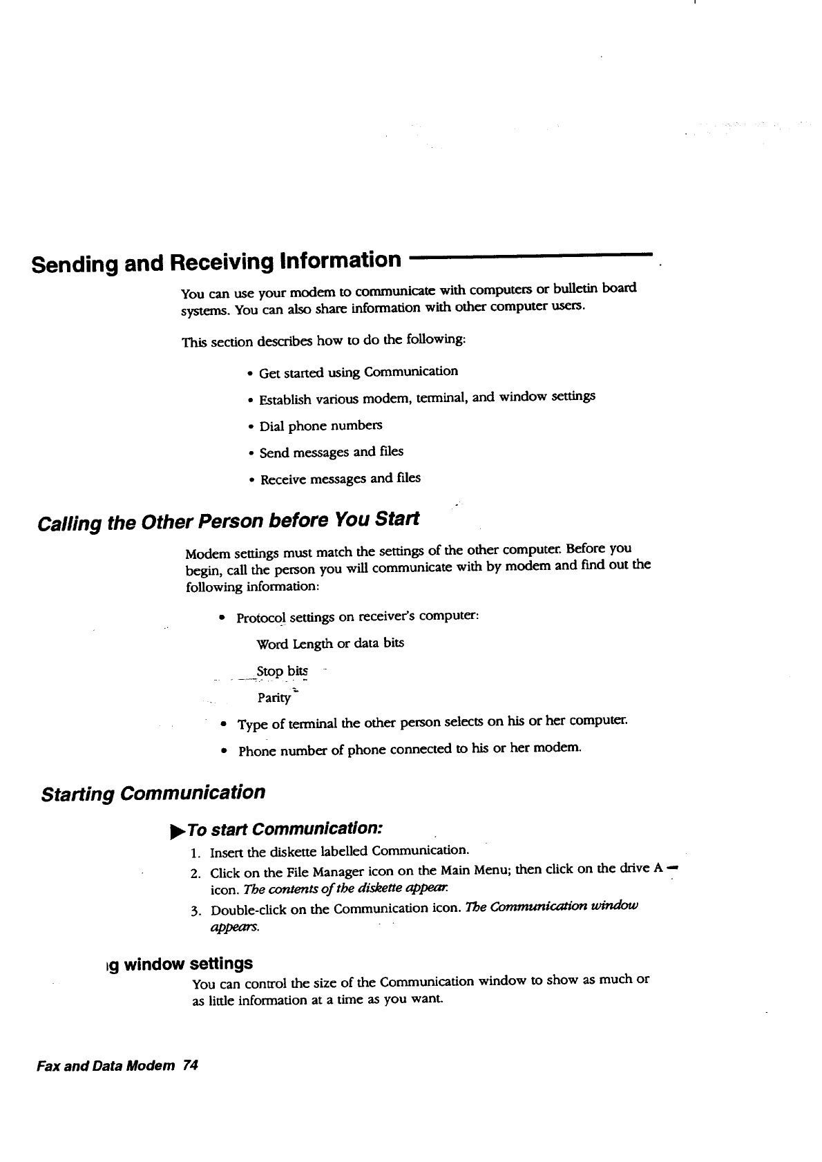 settings, communication, 77