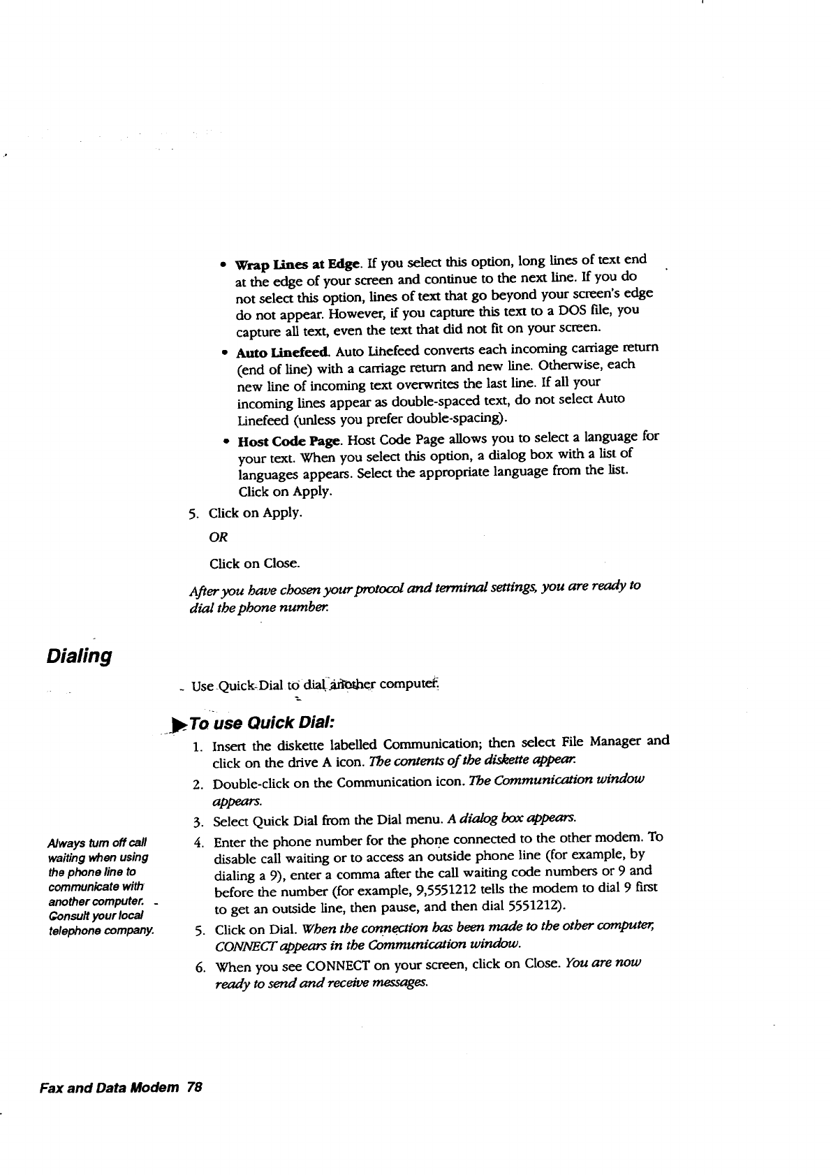 quick dial, communication, 78