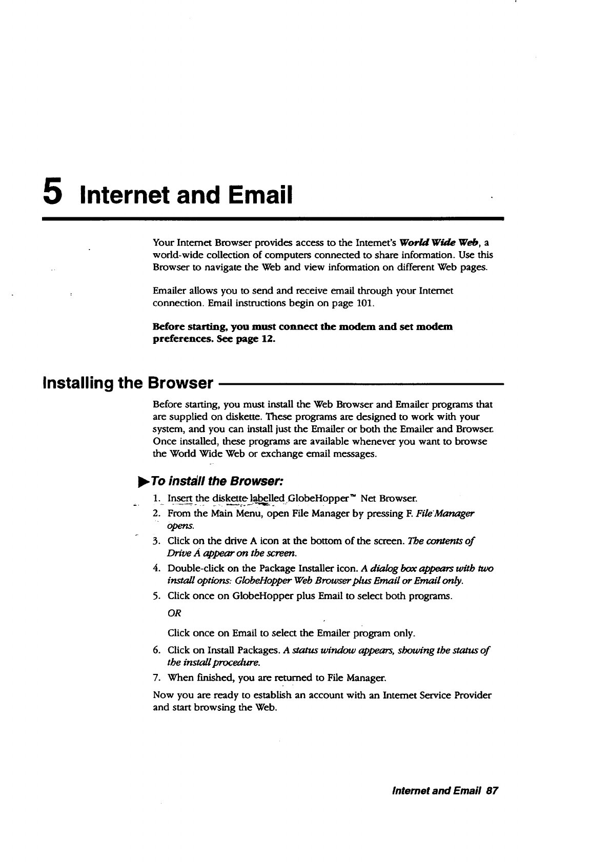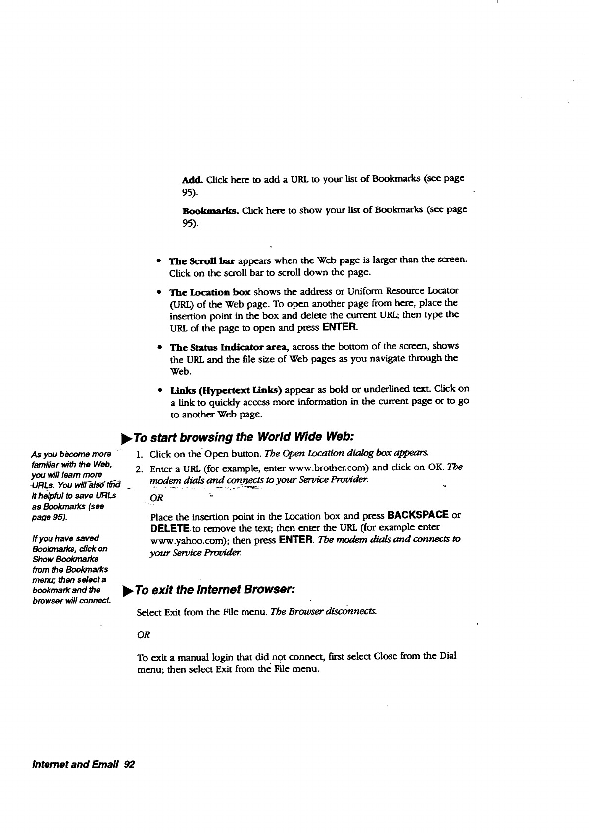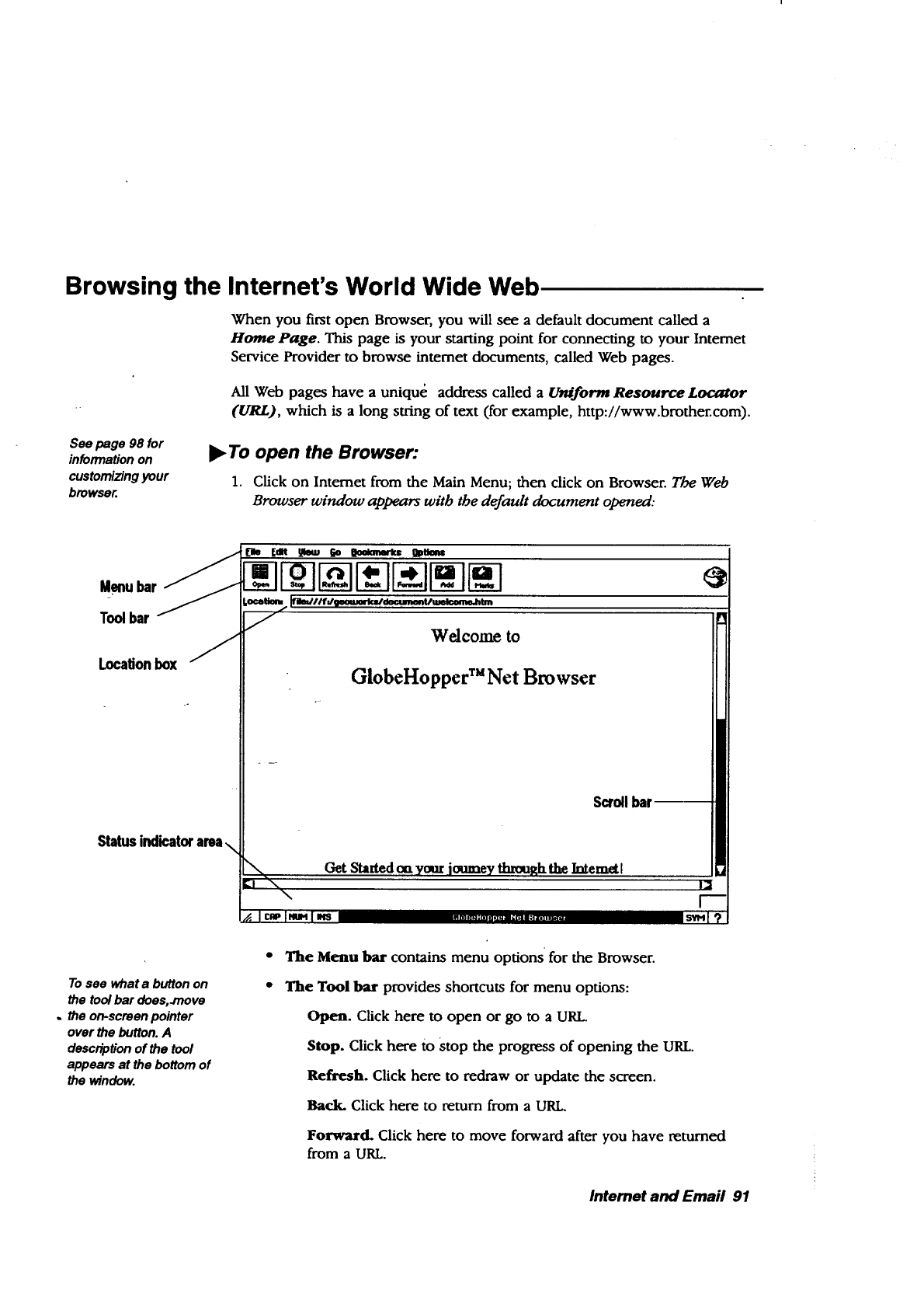 • lnternet. The Browser allows you to browse the World Wide Web