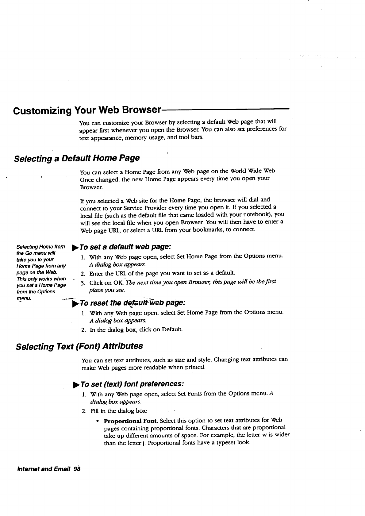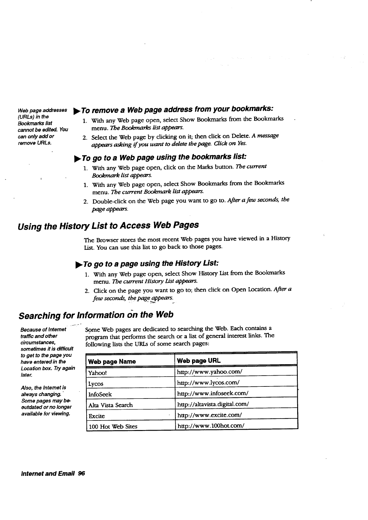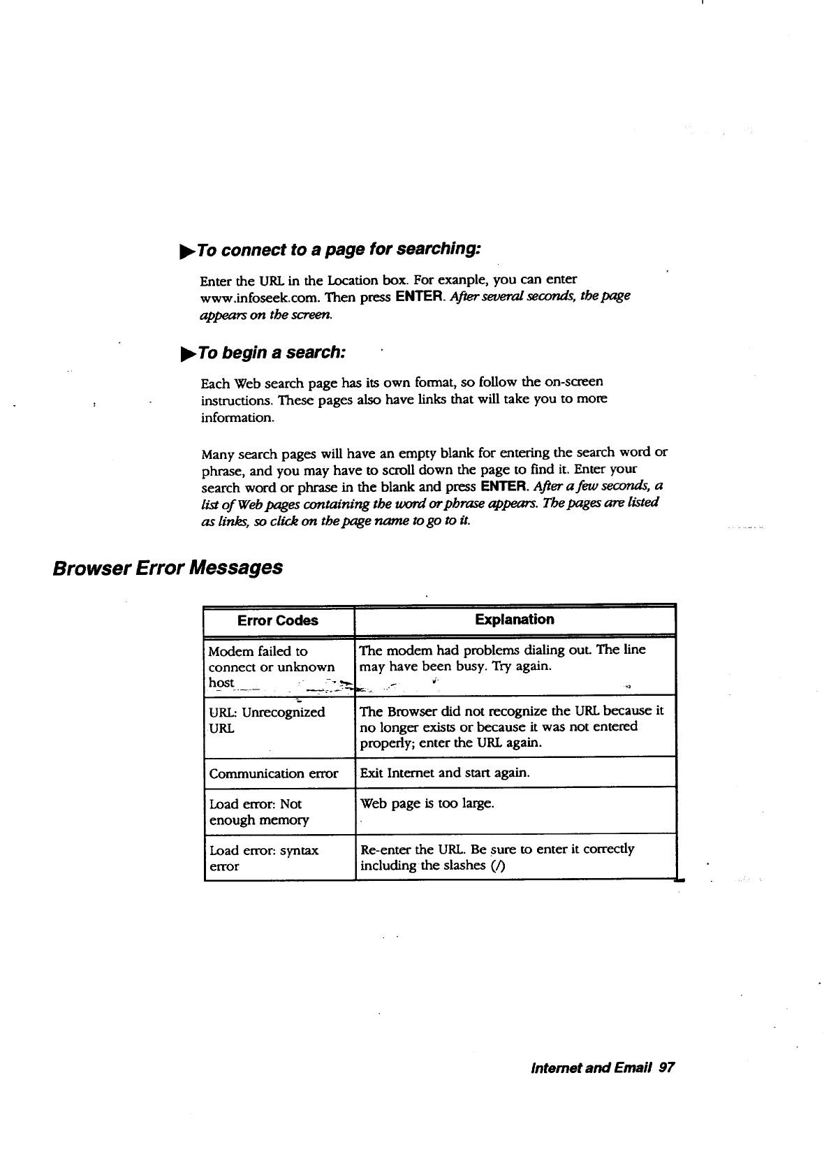 • lnternet. The Browser allows you to browse the World Wide Web