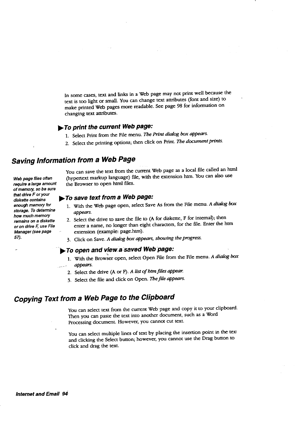 internet web pages, 94