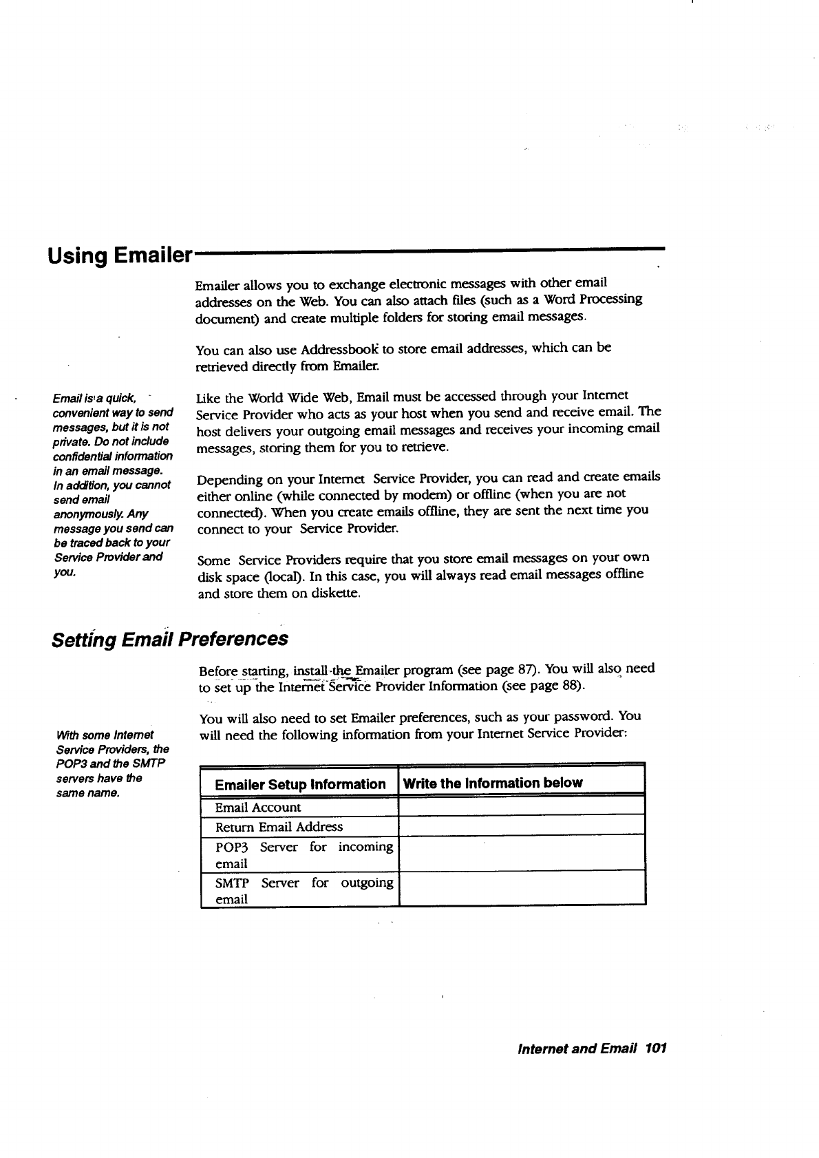 on the Internet. Emailer allows you_to send and receive email via the