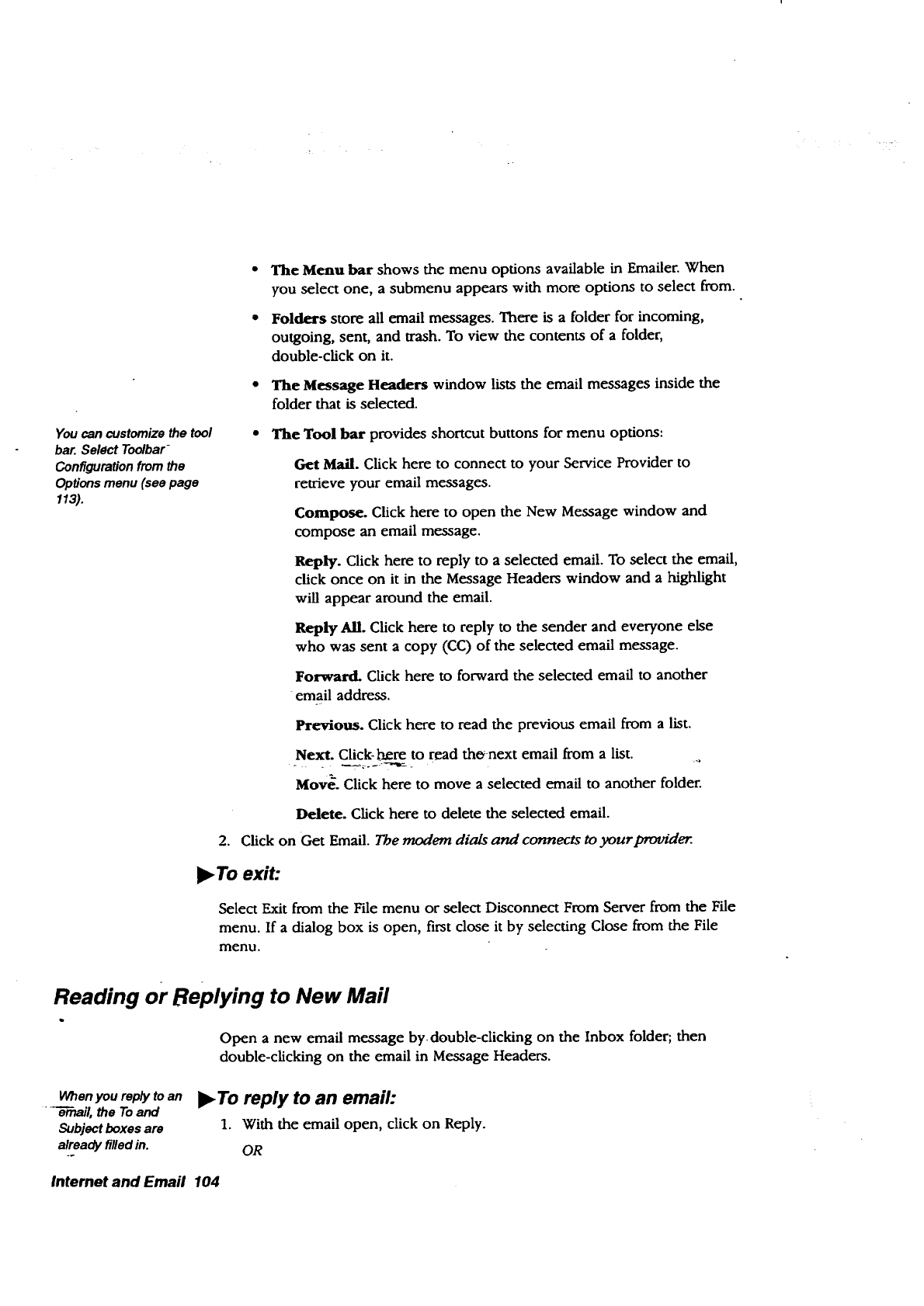 r_plying to an email, 104