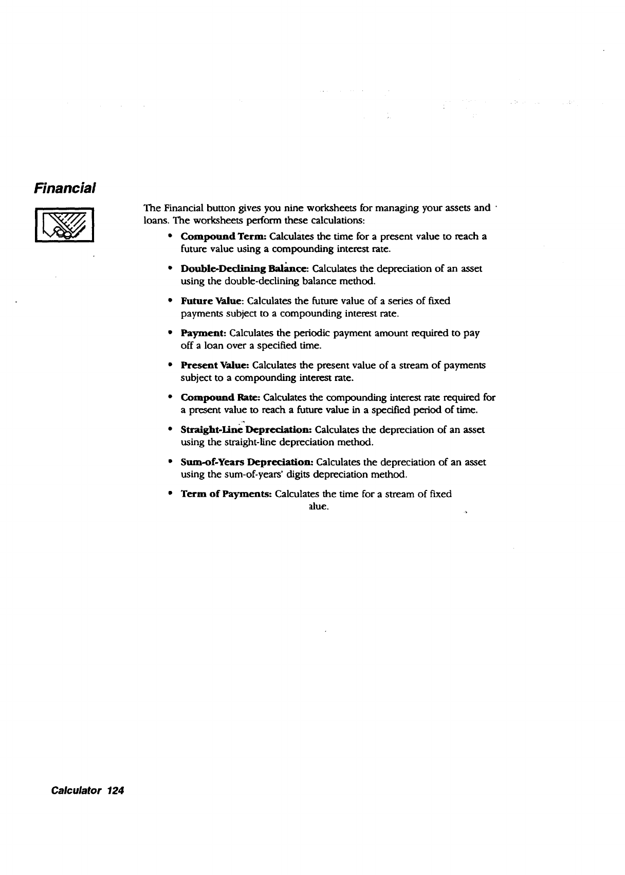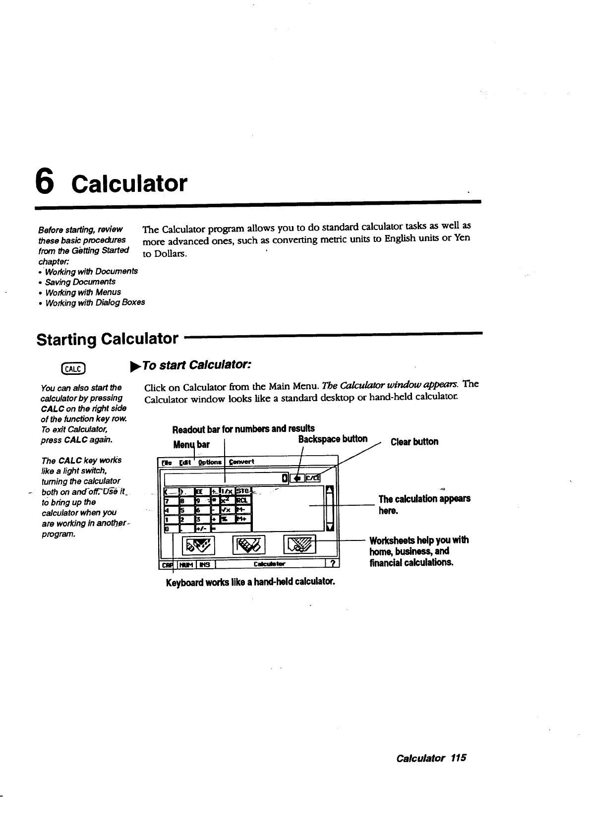 •Calculator. Performs math calculations. Press the CALC key from the