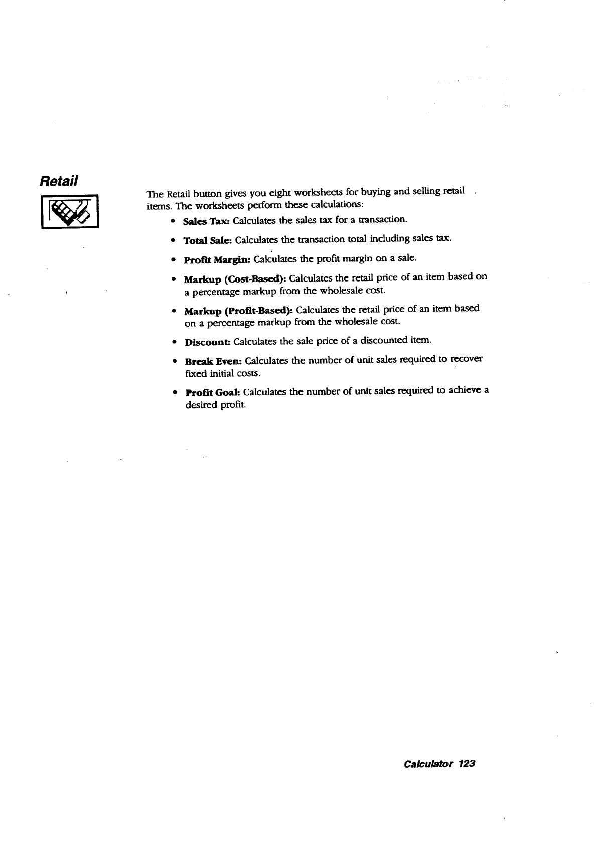 retail worksheets, Calculator,