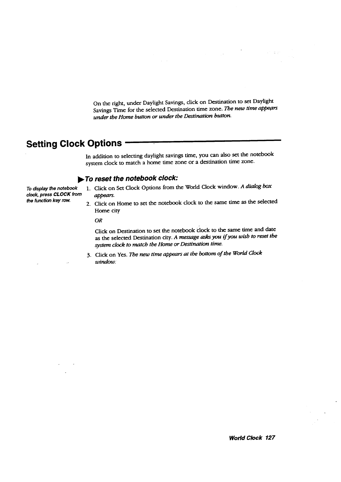 system clock, World Clock, 127