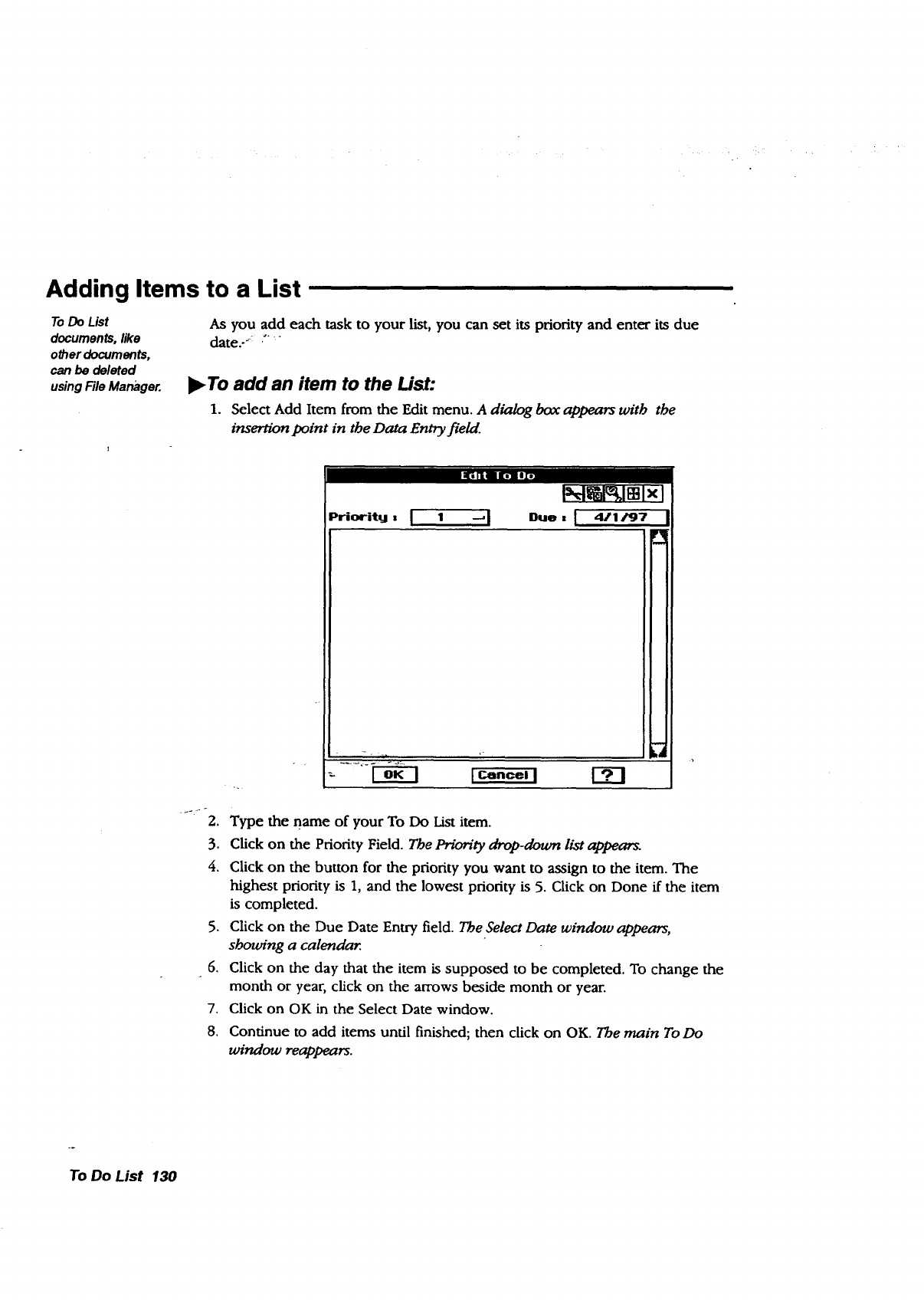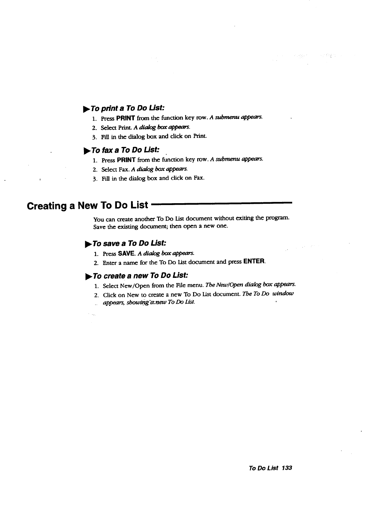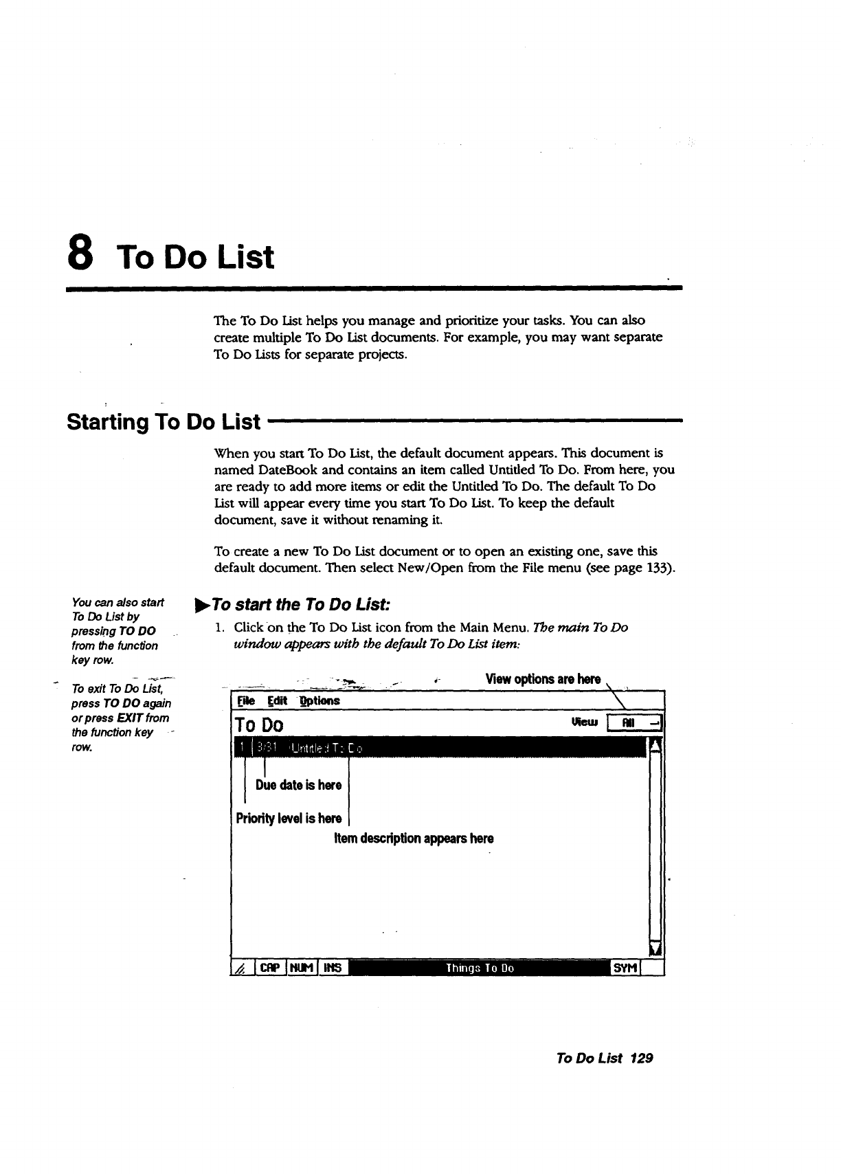 •To Do List. Tracks and prioritizes tasks. Press the TO DO key from