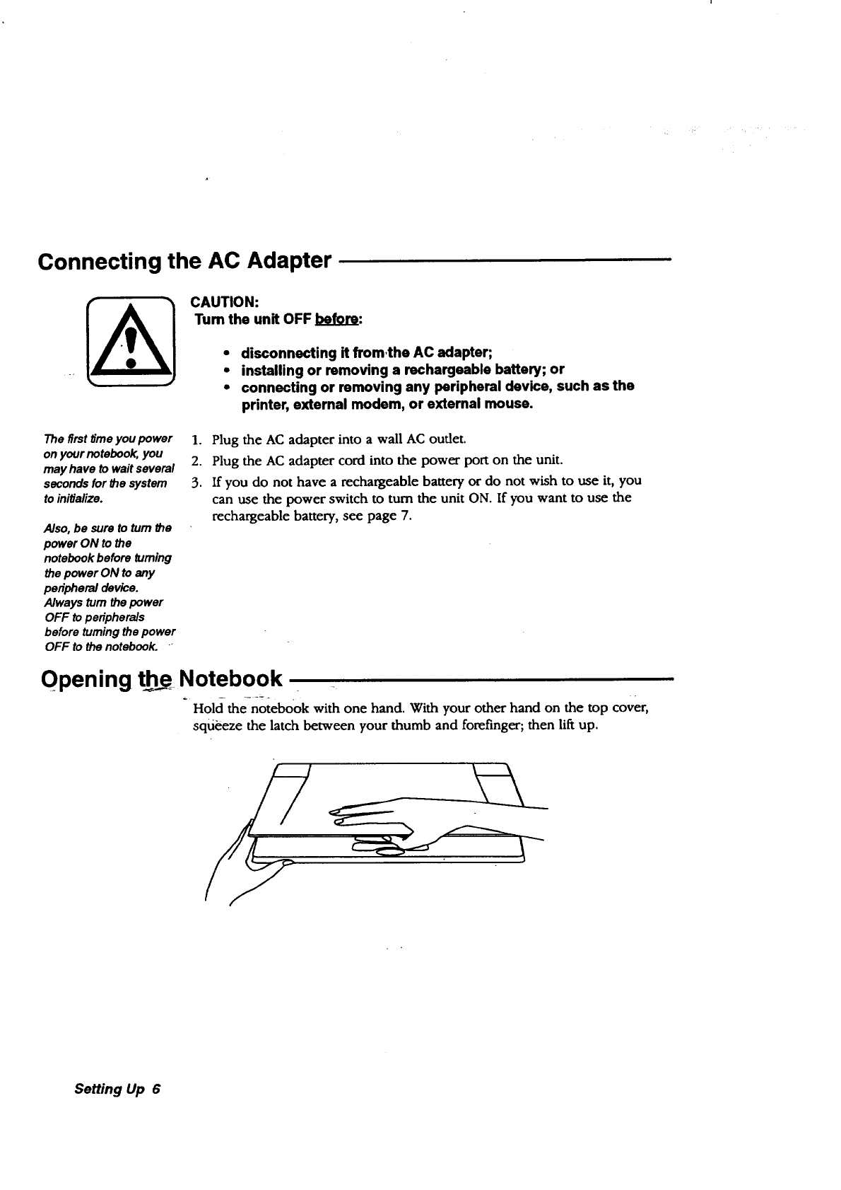 turning the power on, 6