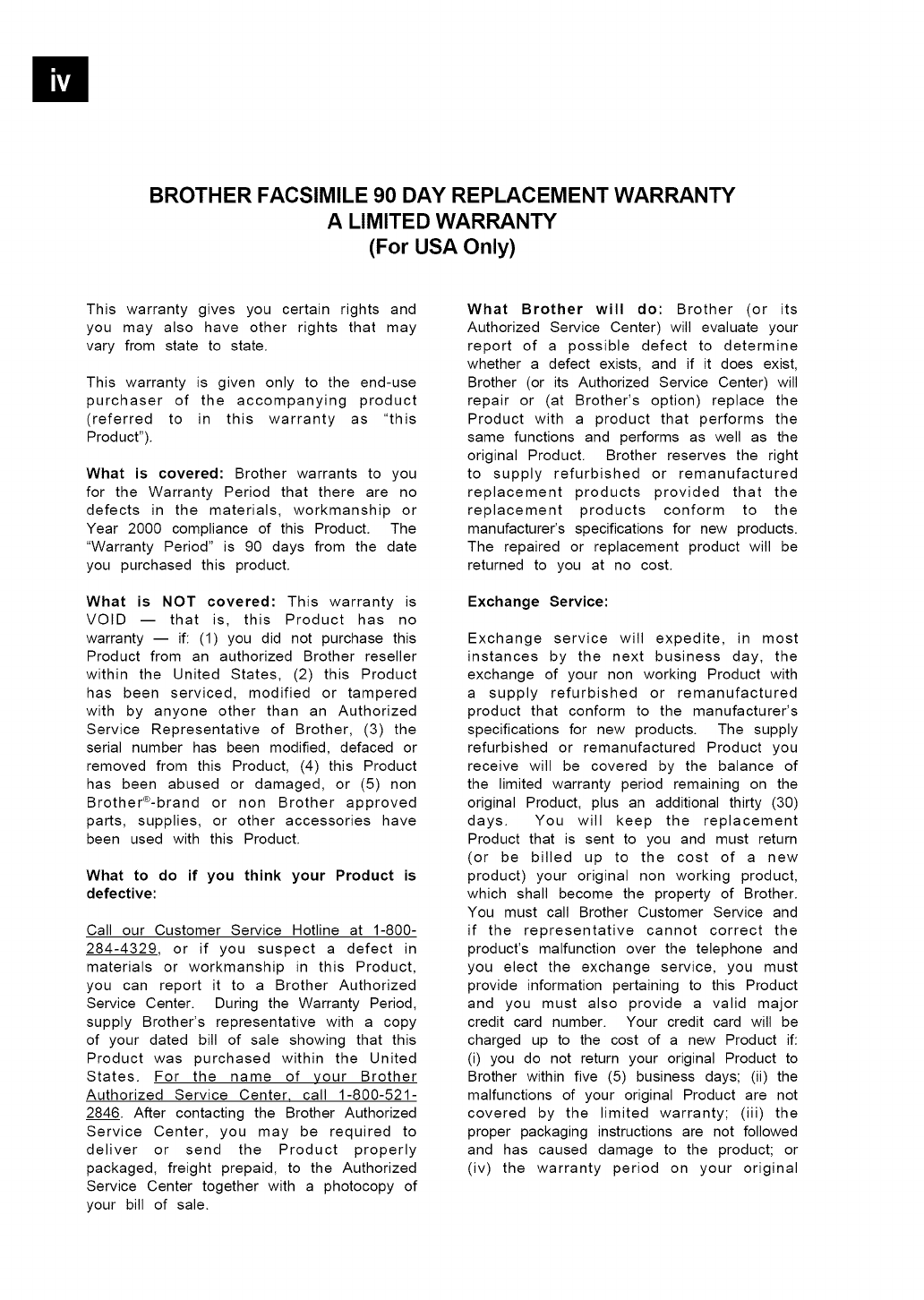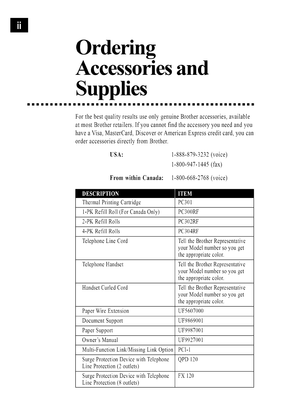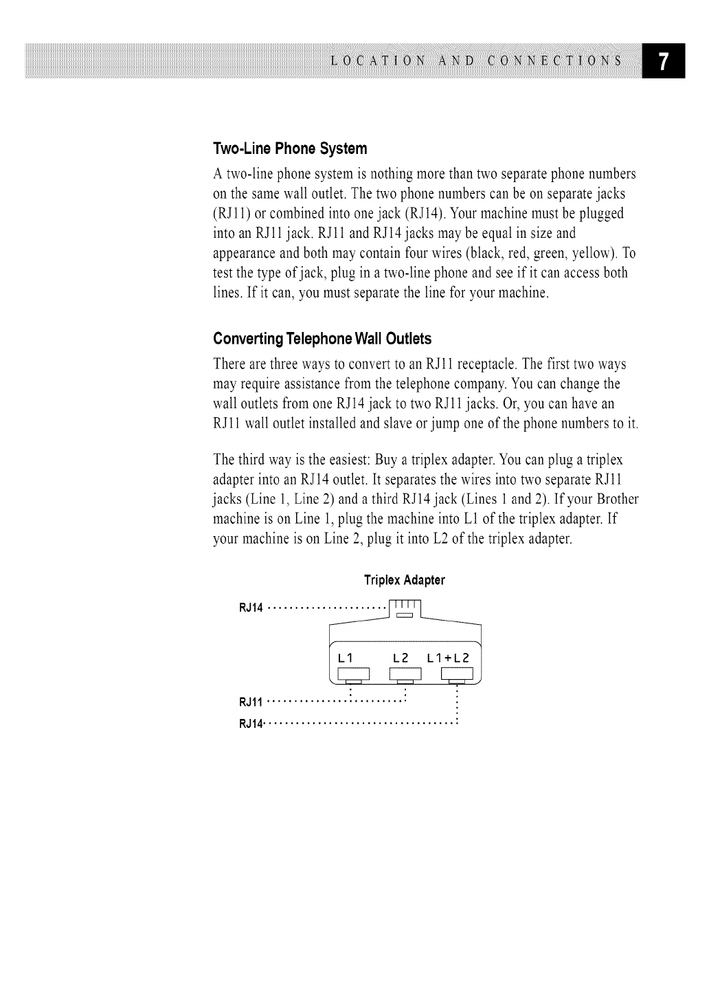 Telephone Line Cord Tell the Brother Representative