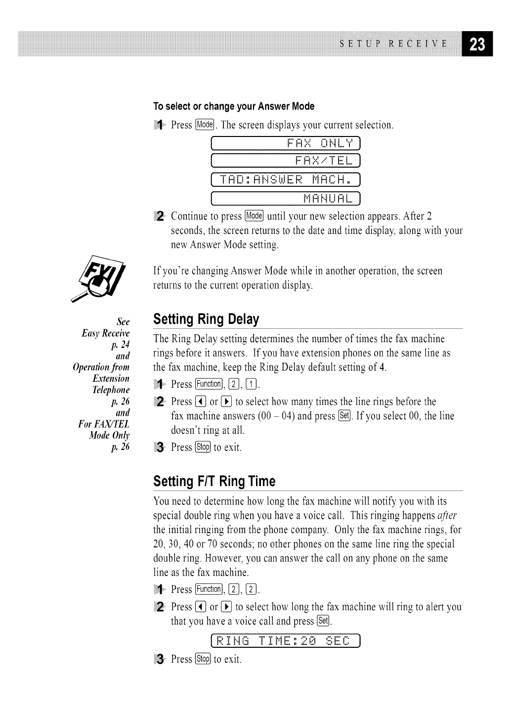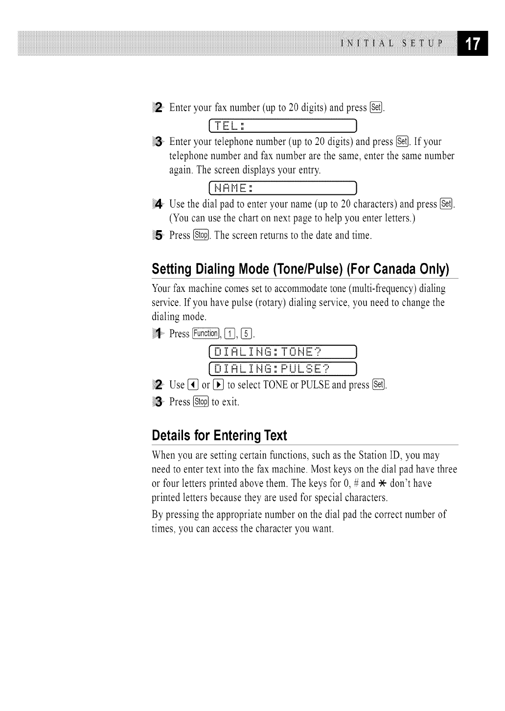 remote fax machine (up to 20 digits), and then