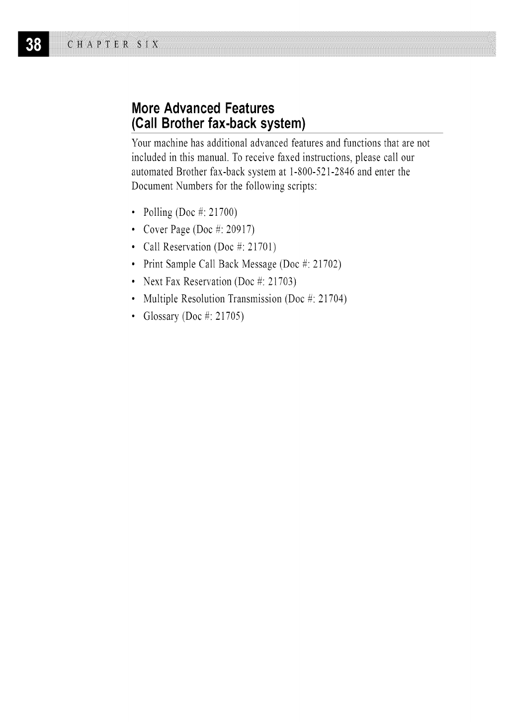 Brother Customer Service has installed an easy-to-use fax-back system, so