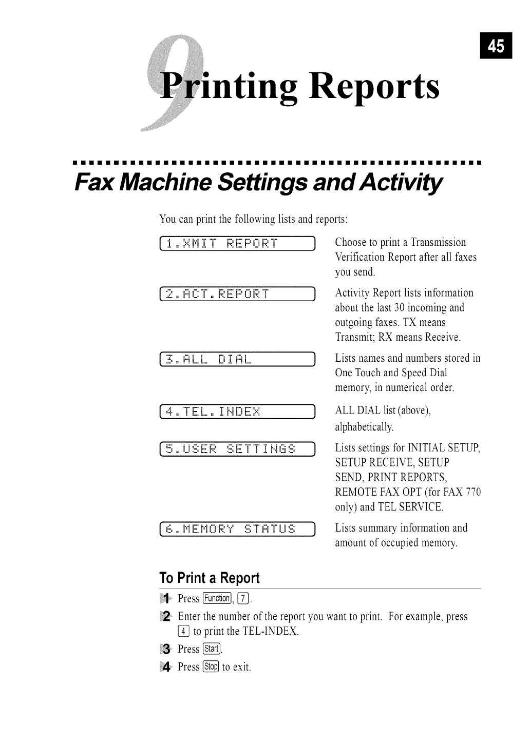 Model: FAX750 FAX770