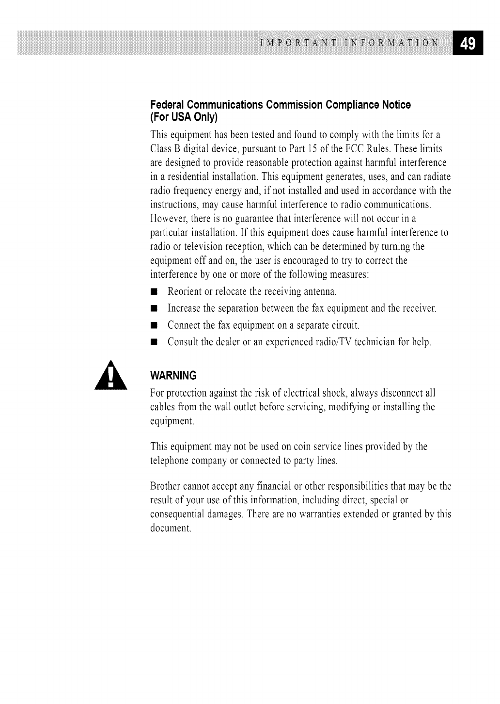 User Manual: BROTHER BROTHER Fax Machines Manual BROTHER Fax Machines Owner's Manual, BROTHER Fax Machines installation guides