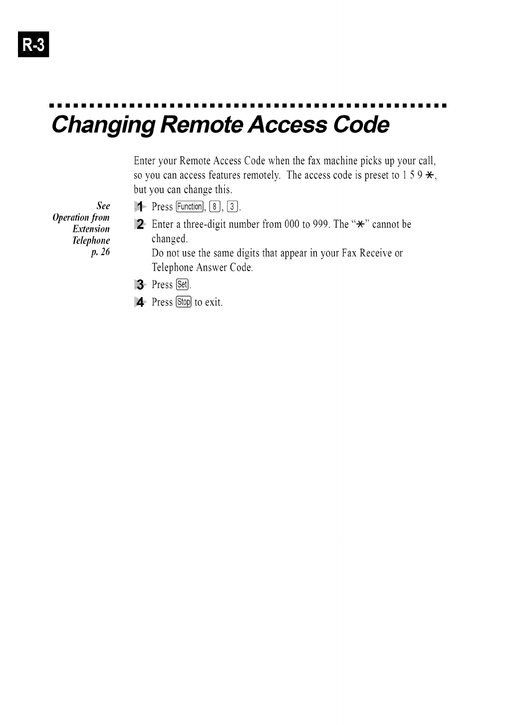Remote Access Code (_ _ _ _).