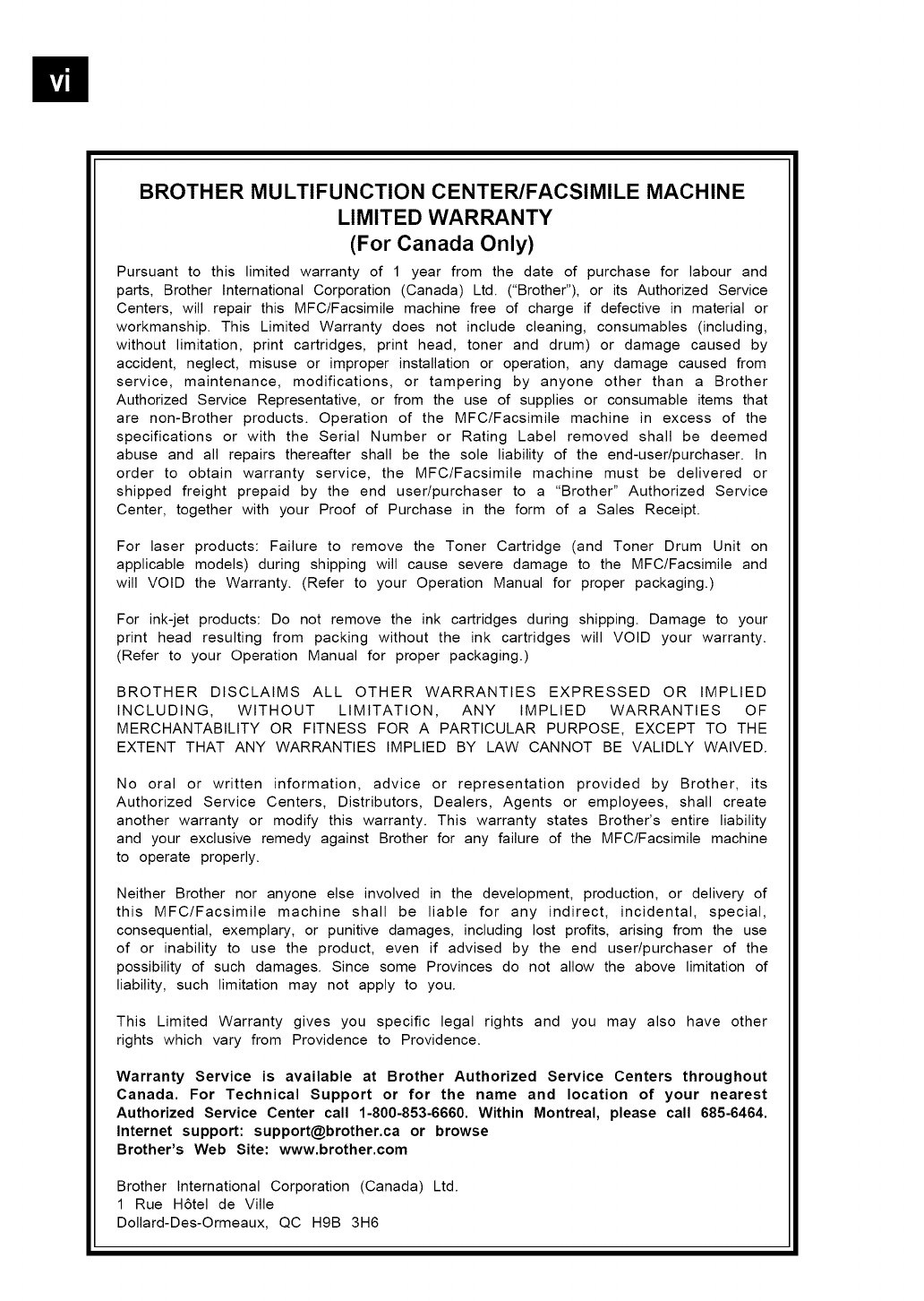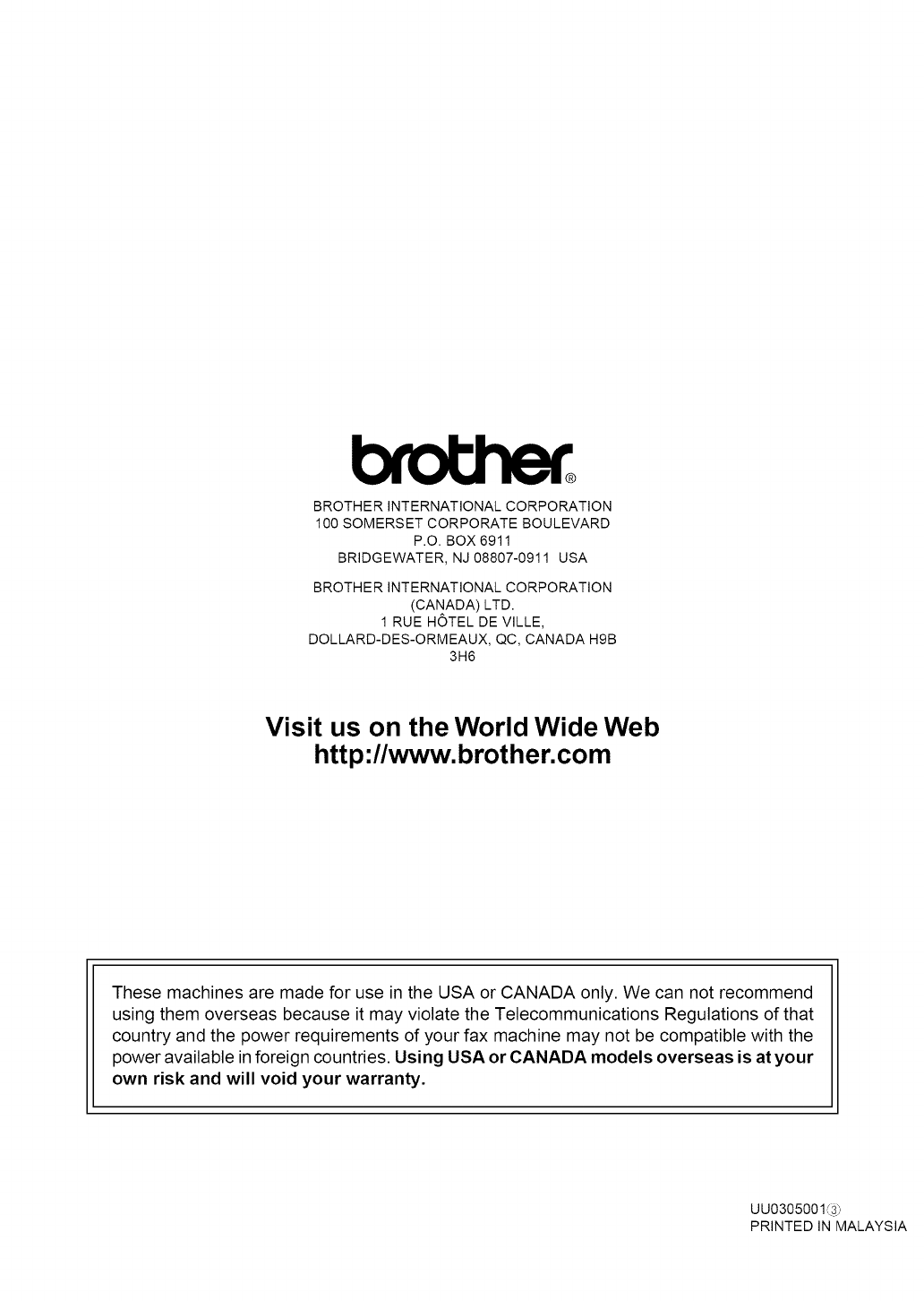 http://www.brother.com. All remedies will be provided