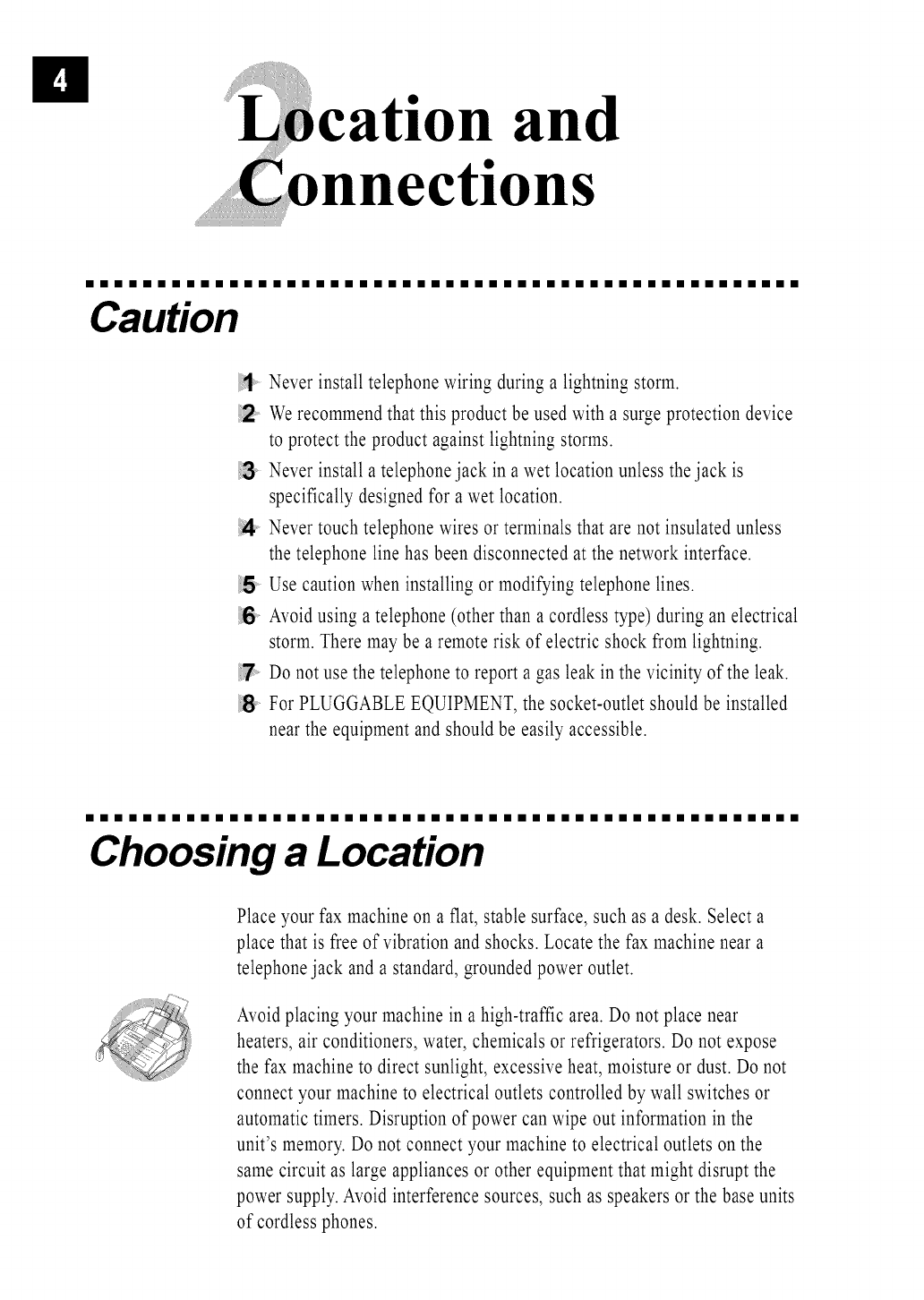 country and the power requirements of your fax machine may not be compatible with the